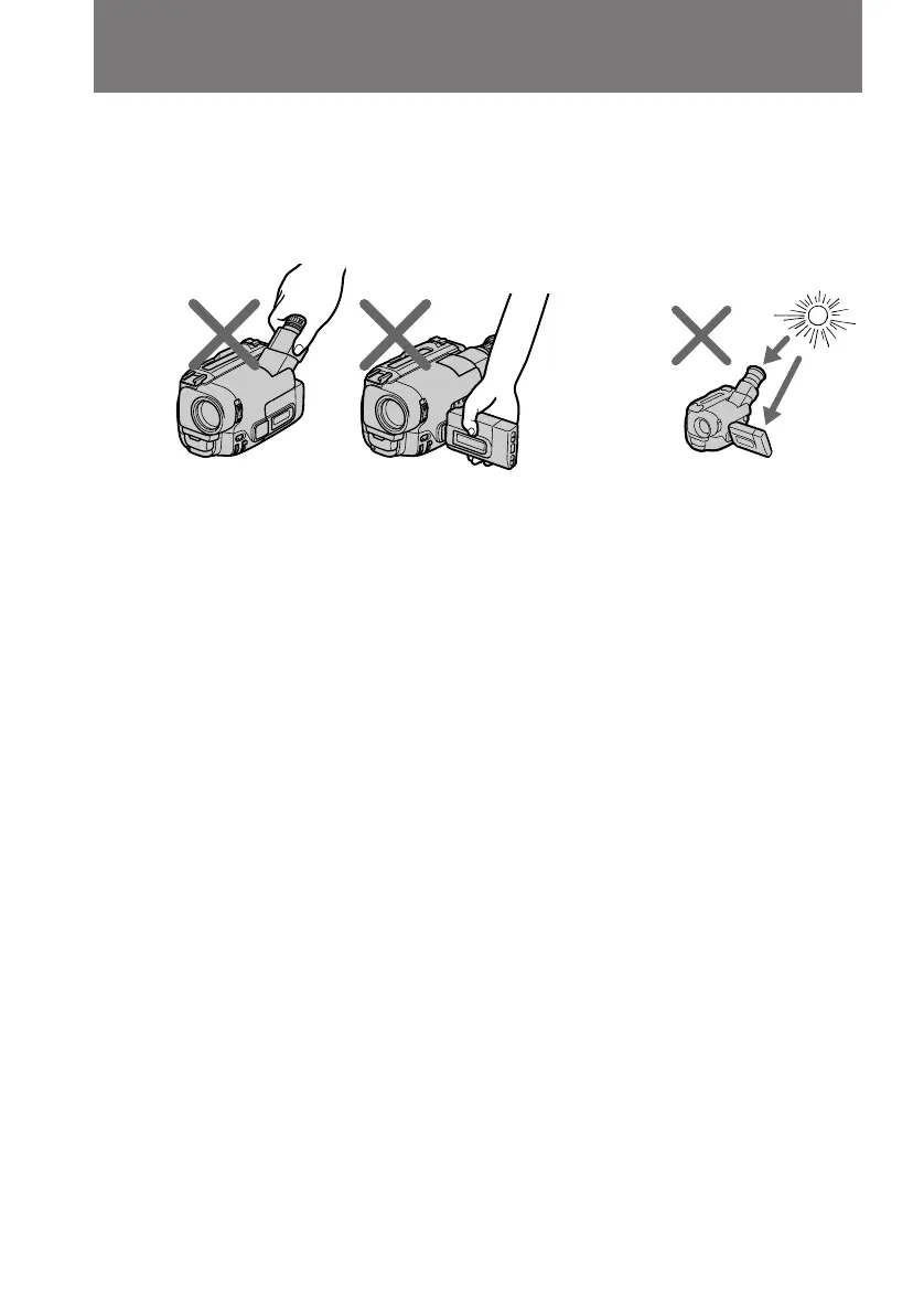 • Do not place the camcorder so as to point the viewfinder or the LCD screen toward