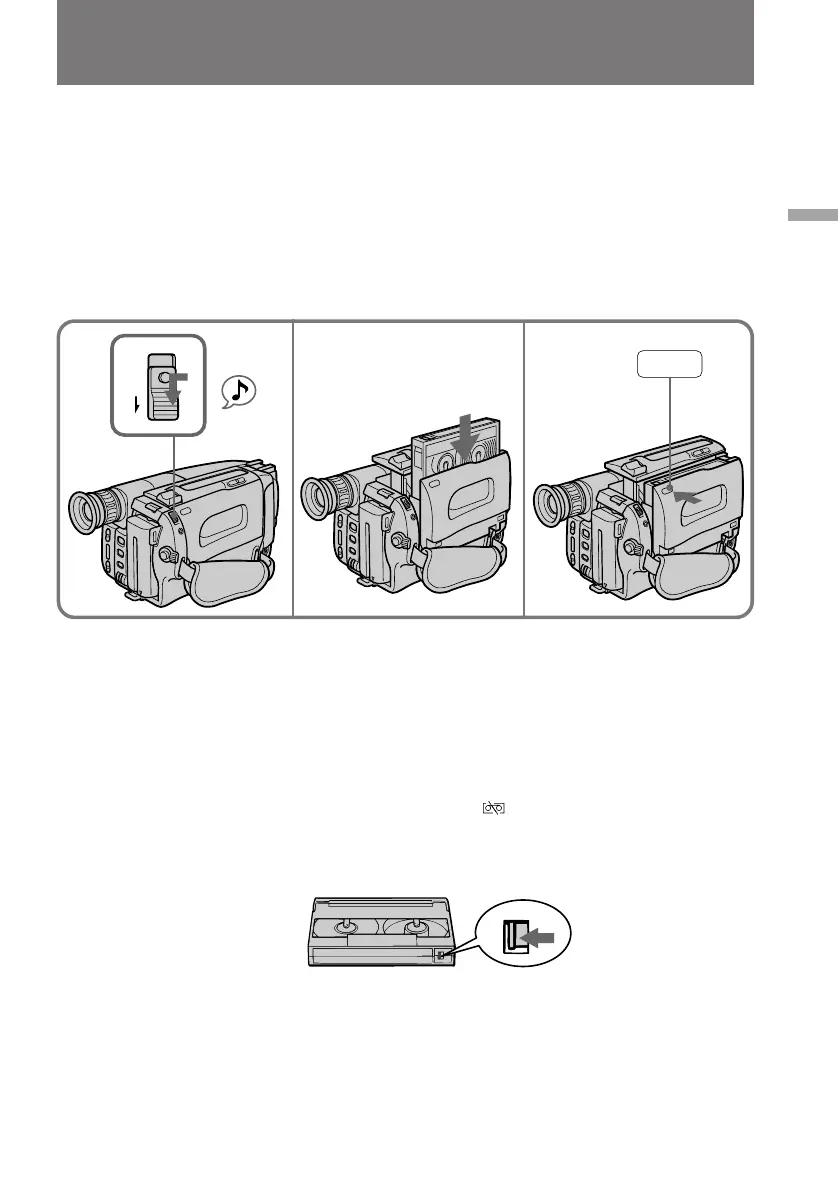 Slide the tab on the cassette to expose the red mark. If you insert the cassette with the