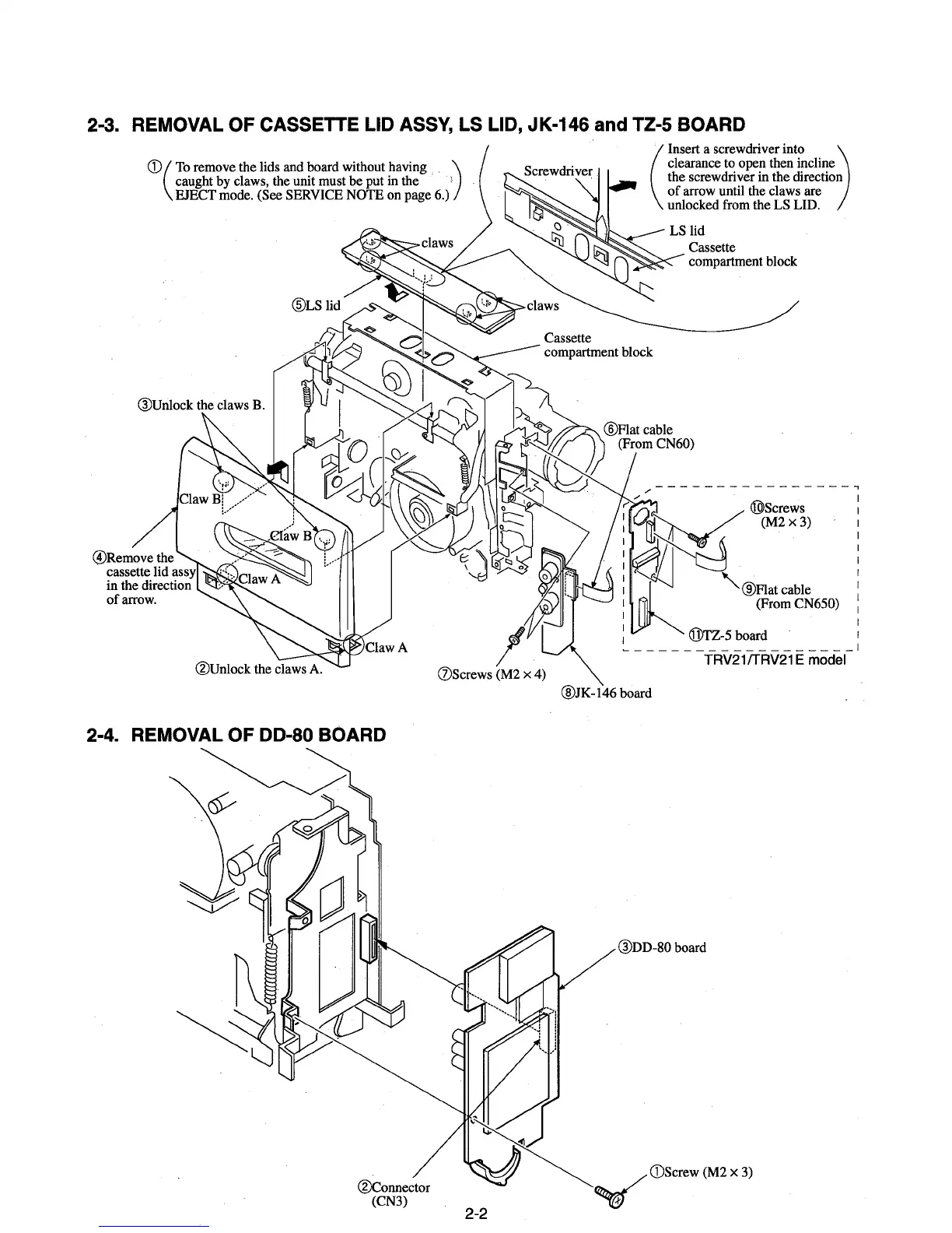 Sony CCD-TRV11 - 2-3. Removal of Cassette Lid Assy, LS Lid, JK-146 and TZ-5 Board