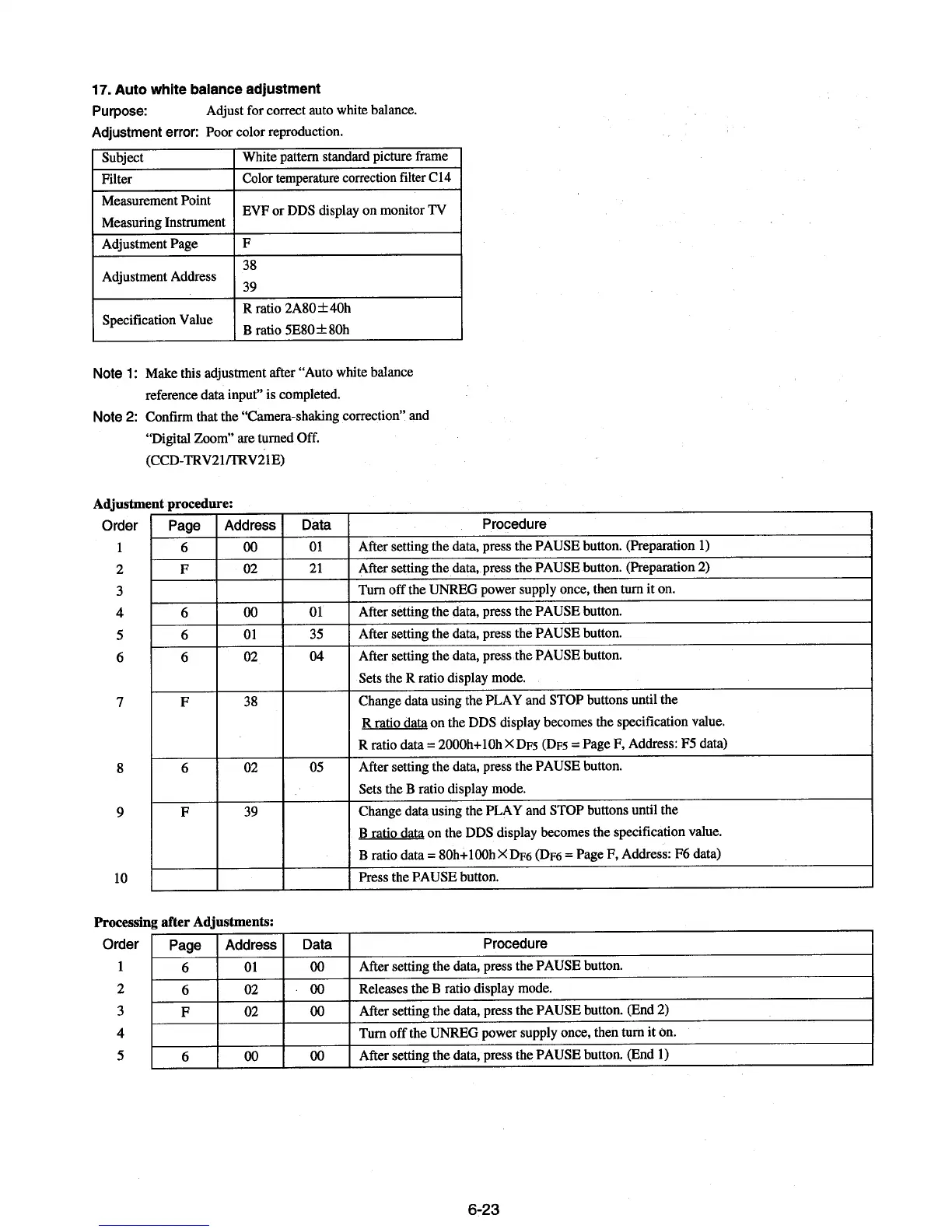 Sony CCD-TRV11 - Auto White Balance Adjustment