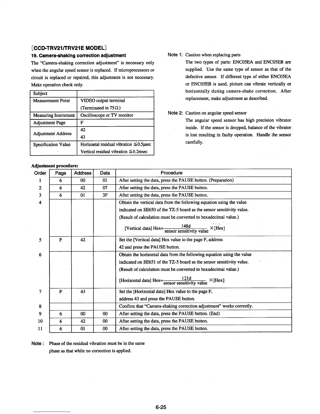 Sony CCD-TRV11 - Camera-Shaking Correction Adjustment