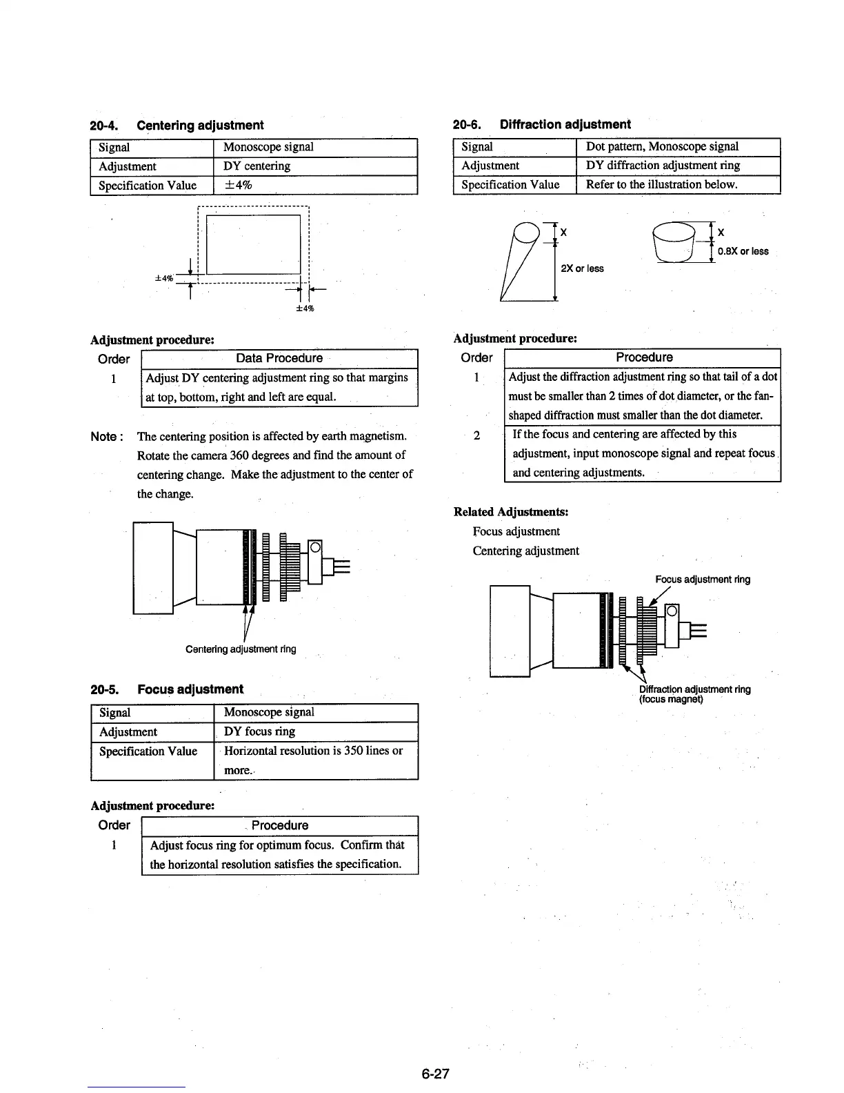Sony CCD-TRV11 - Centering Adjustment; Focus Adjustment; Diffraction Adjustment