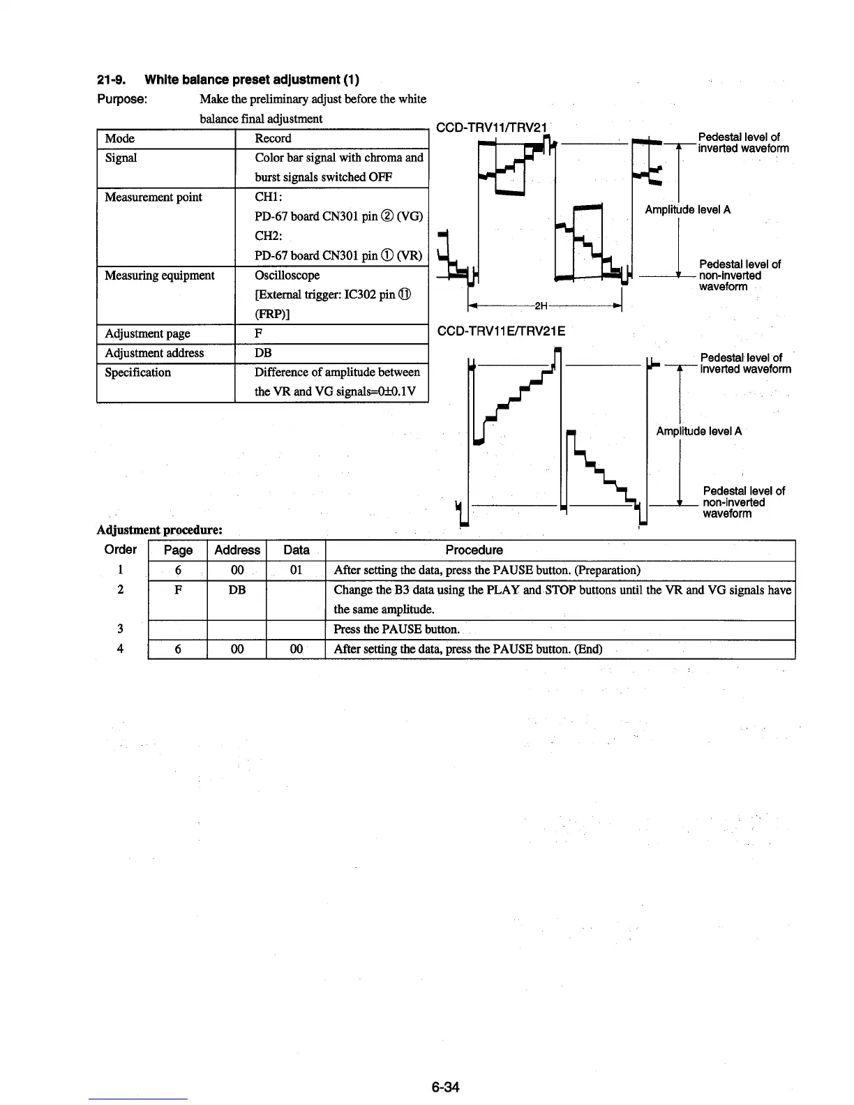 Sony CCD-TRV11 - White Balance Preset Adjustment