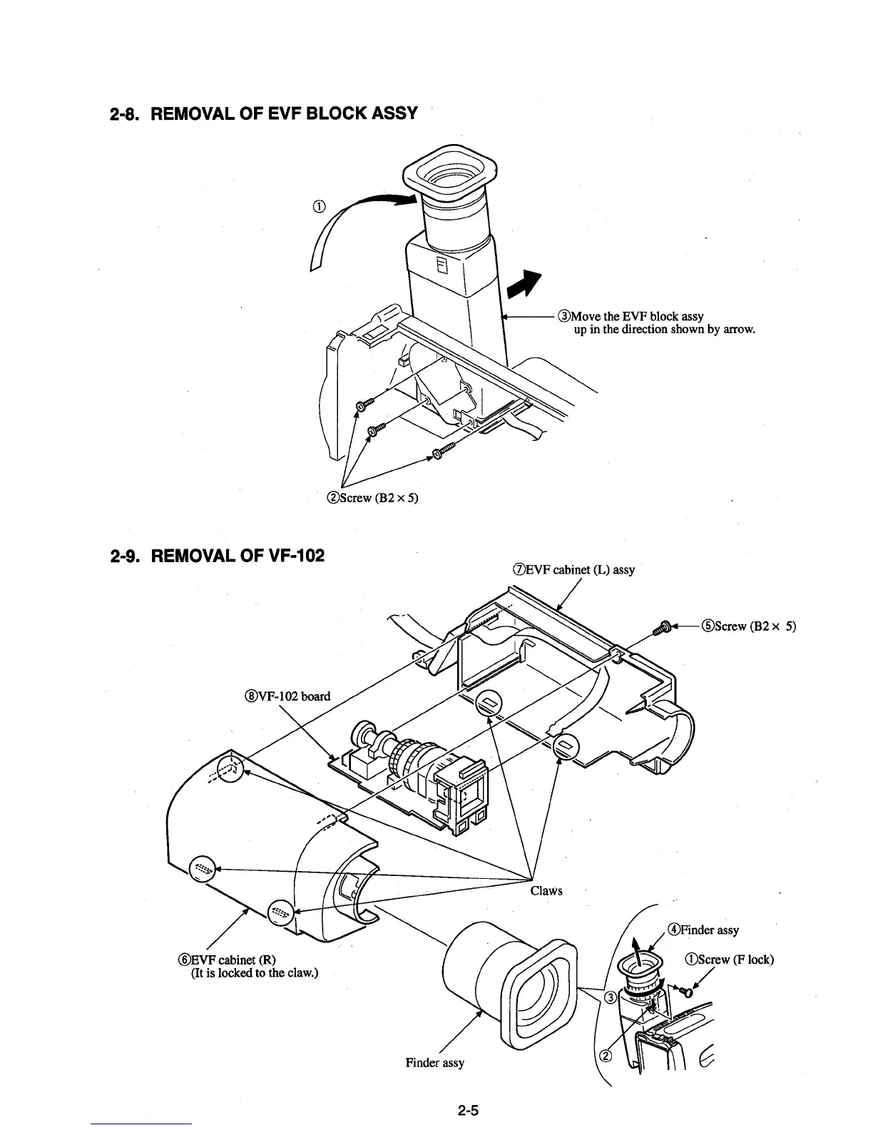 Sony CCD-TRV11 - Removal of EVF Block Assy; Removal of VF-102