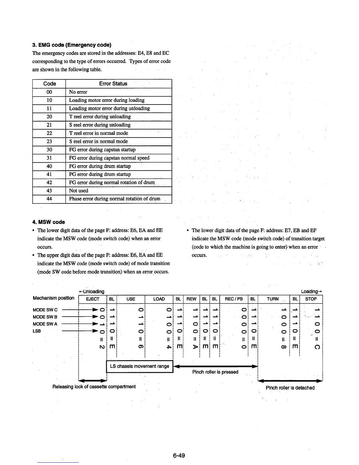 Sony CCD-TRV11 - EMG Code; MSW Code