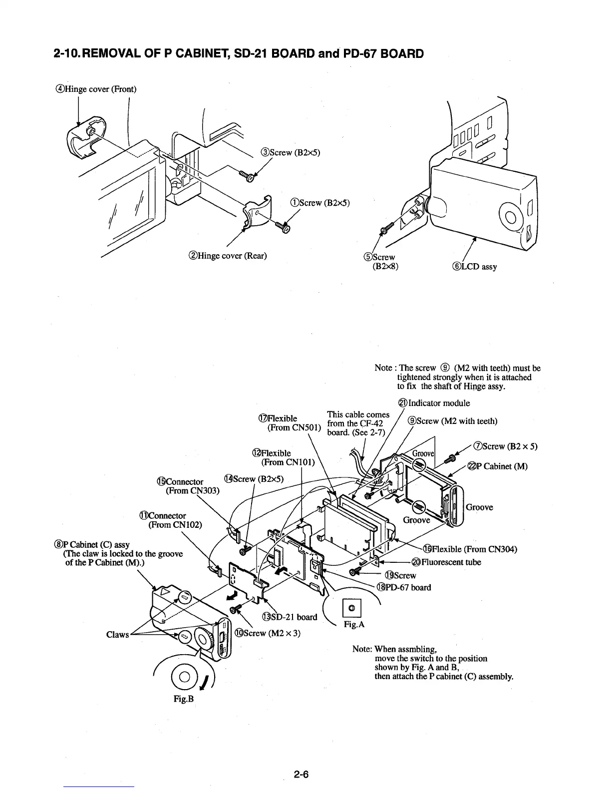 Sony CCD-TRV11 - Removal of P Cabinet, SD-21 Board and PD-67 Board