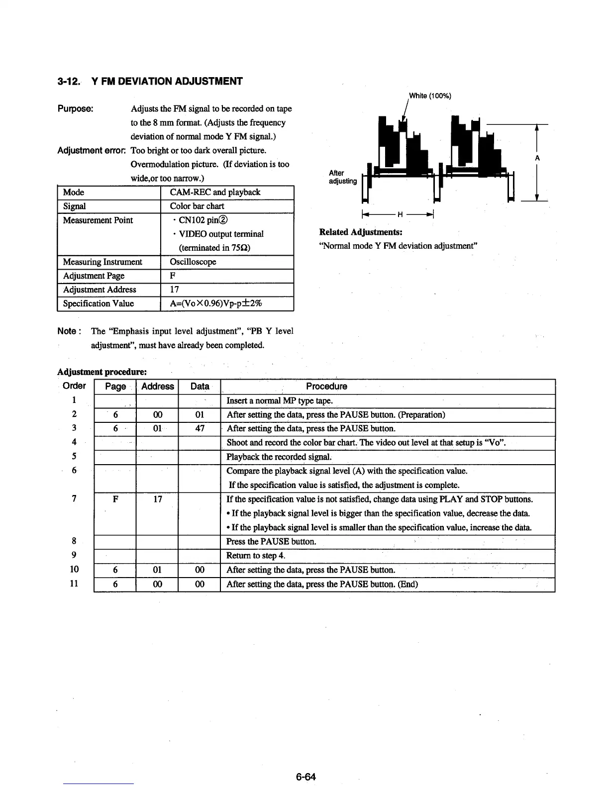 Sony CCD-TRV11 - Y FM Deviation Adjustment
