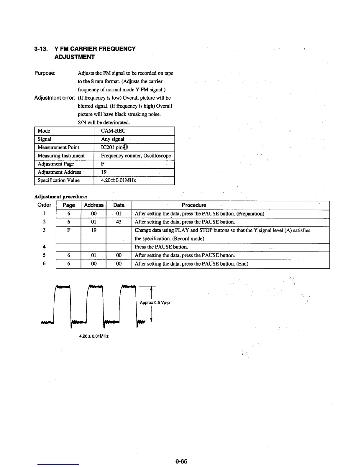 Sony CCD-TRV11 - Y FM Carrier Frequency Adjustment
