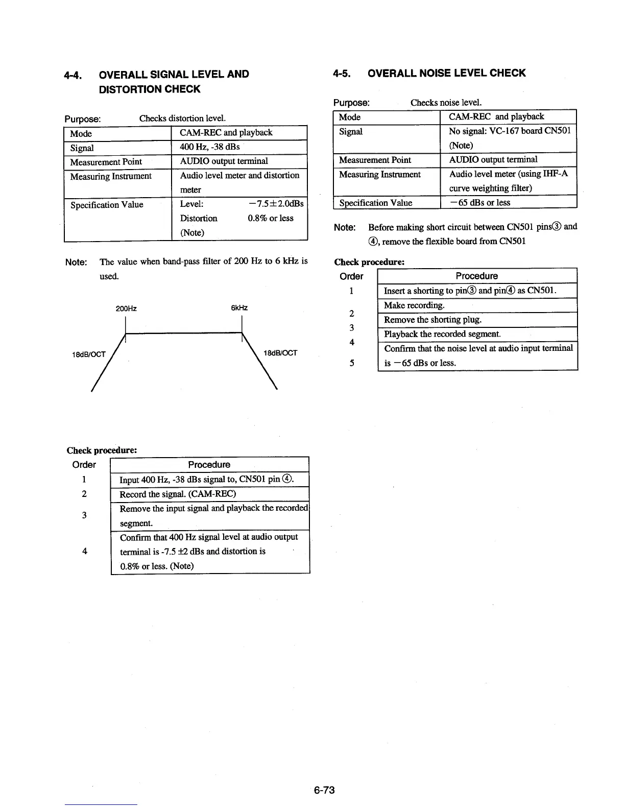 Sony CCD-TRV11 - Overall Signal Level and Distortion Check; Overall Noise Level Check