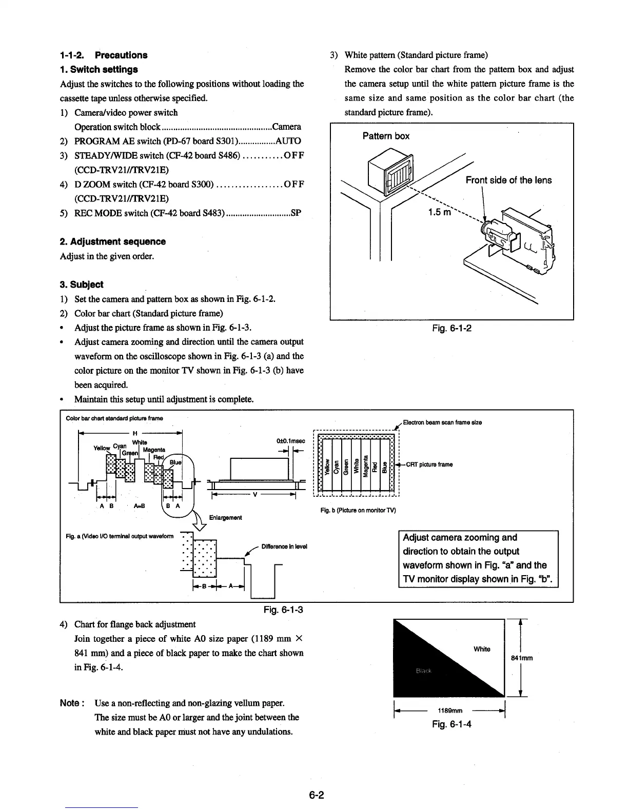 Sony CCD-TRV11 - Precautions; Switch Settings; Adjustment Sequence; Subject