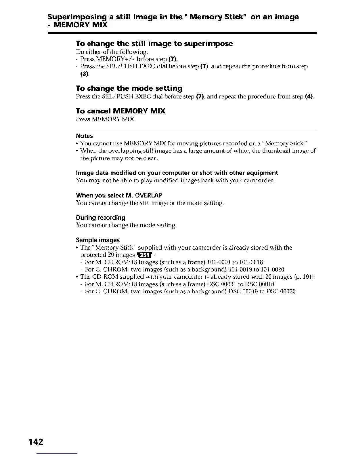 • You cannot use MEMORY MIX for moving pictures recorded on a" Memory Stick."