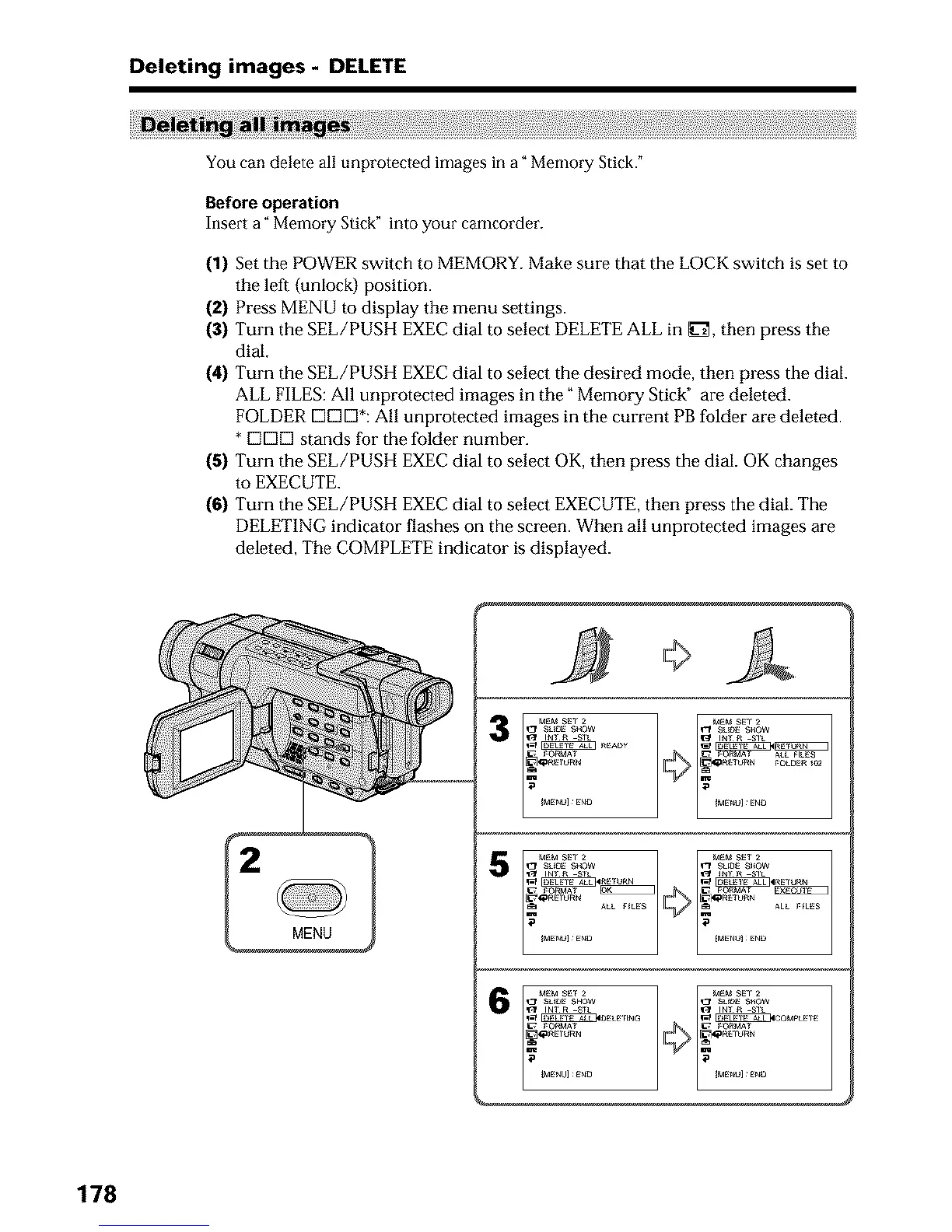 ALL FILES: All unprotected images in the" Memory Stick" are deleted.