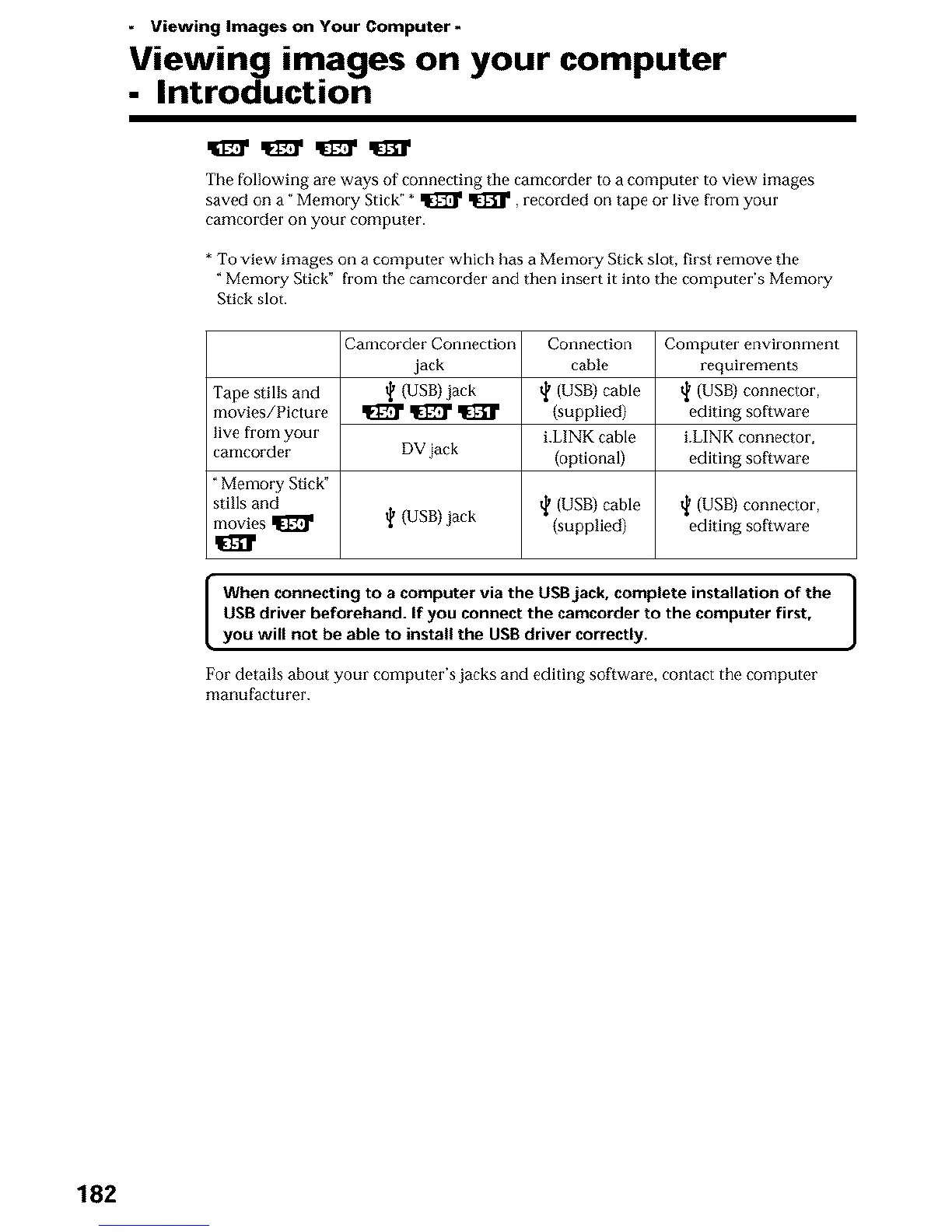 USB driver beforehand. If you connect the camcorder to the computer first,