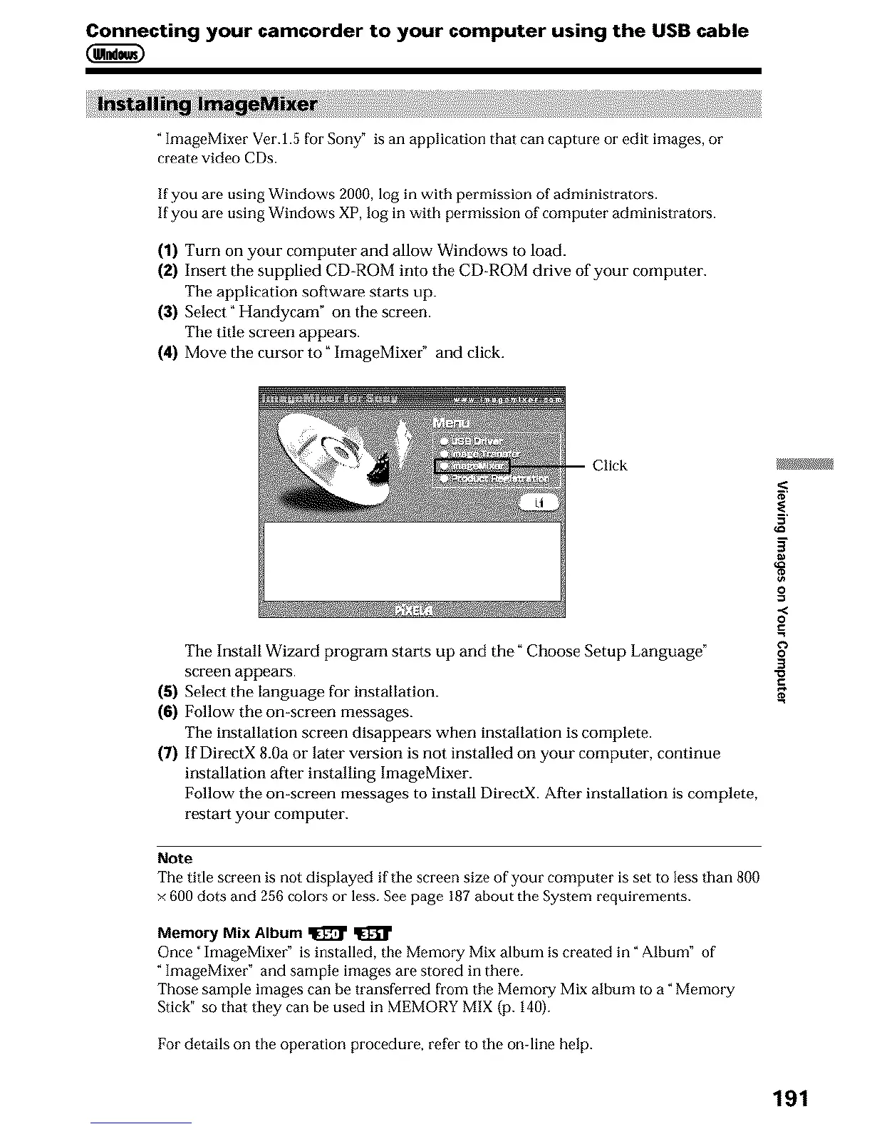 × 600 dots and 256 colors or less. See page 187 about the System requirements.