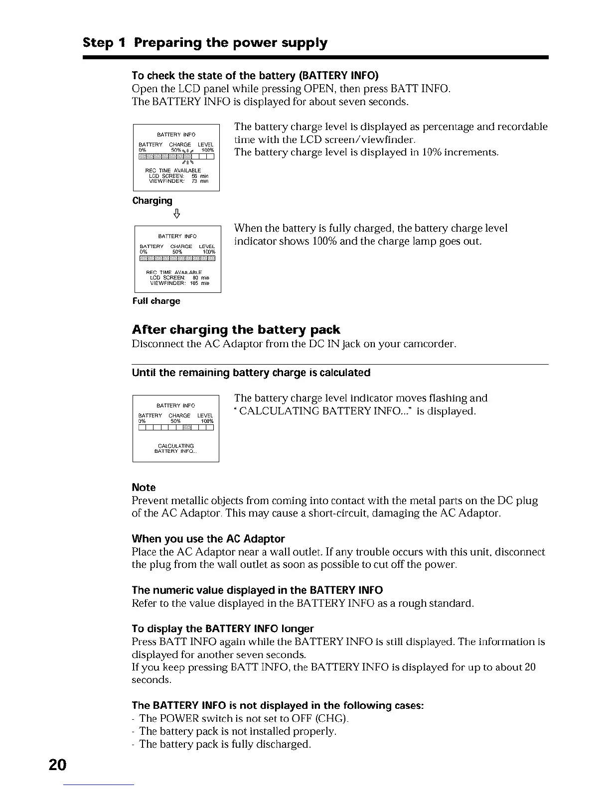 If you keep pressing BATTINFO, the BATTERY INFO is displayed for up to about 20