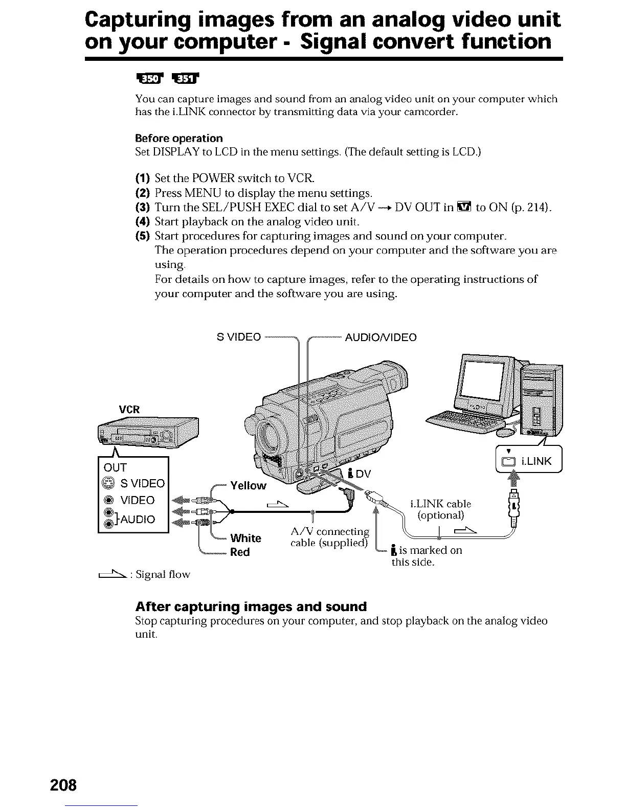 (3) Turn the SEL/PUSH EXEC dial to set A/V --+ DV OUT in _ to ON (p. 214).