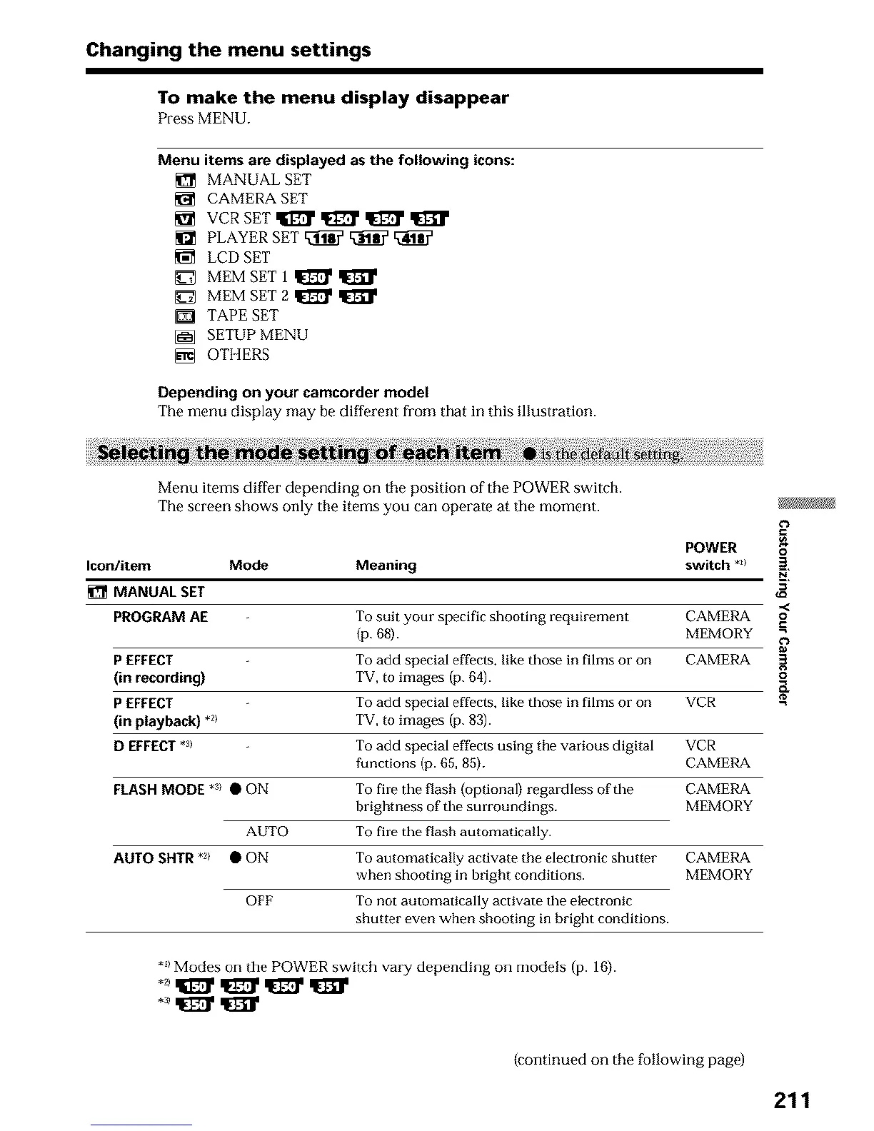 *_)Modes on the POWER switch vary depending on models (p. 16).