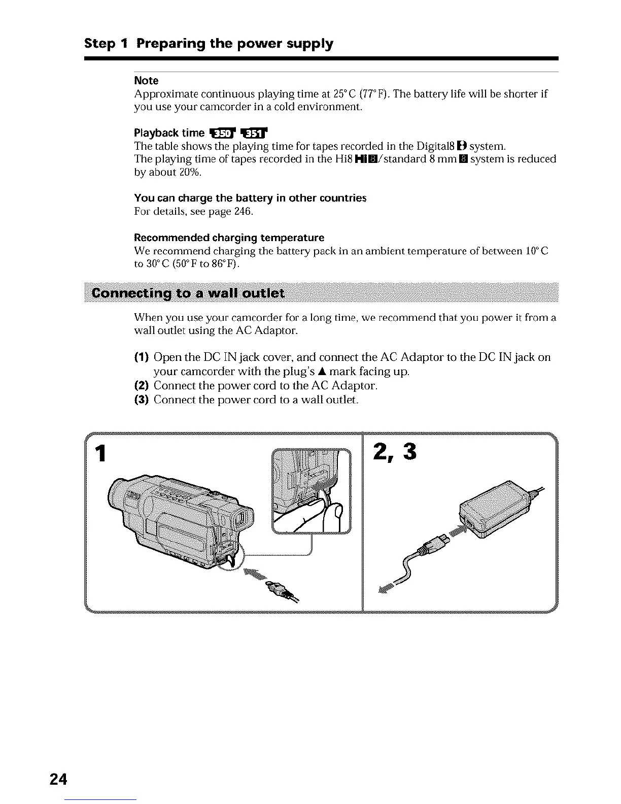When you use your camcorder ft_r a long time, we recommend that you power it from a