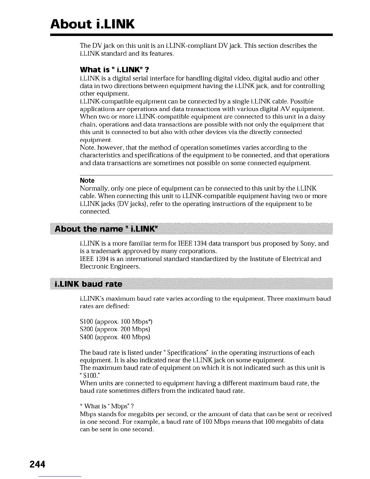 cable. When connecting this unit to i.LINK-compatible equipment having two or more