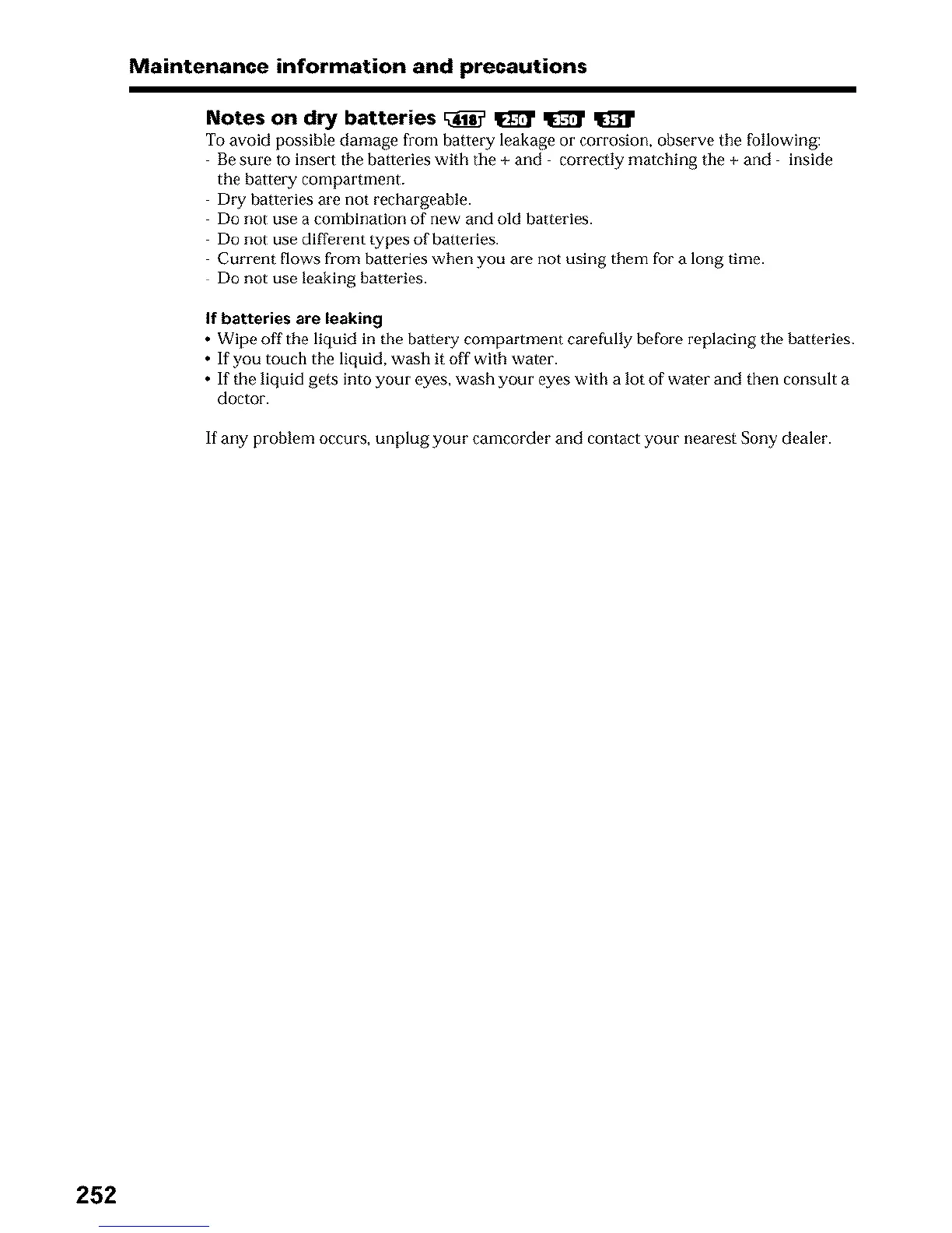 If any problem occurs, unplug your cameorder and contact your nearest Sony dealer.