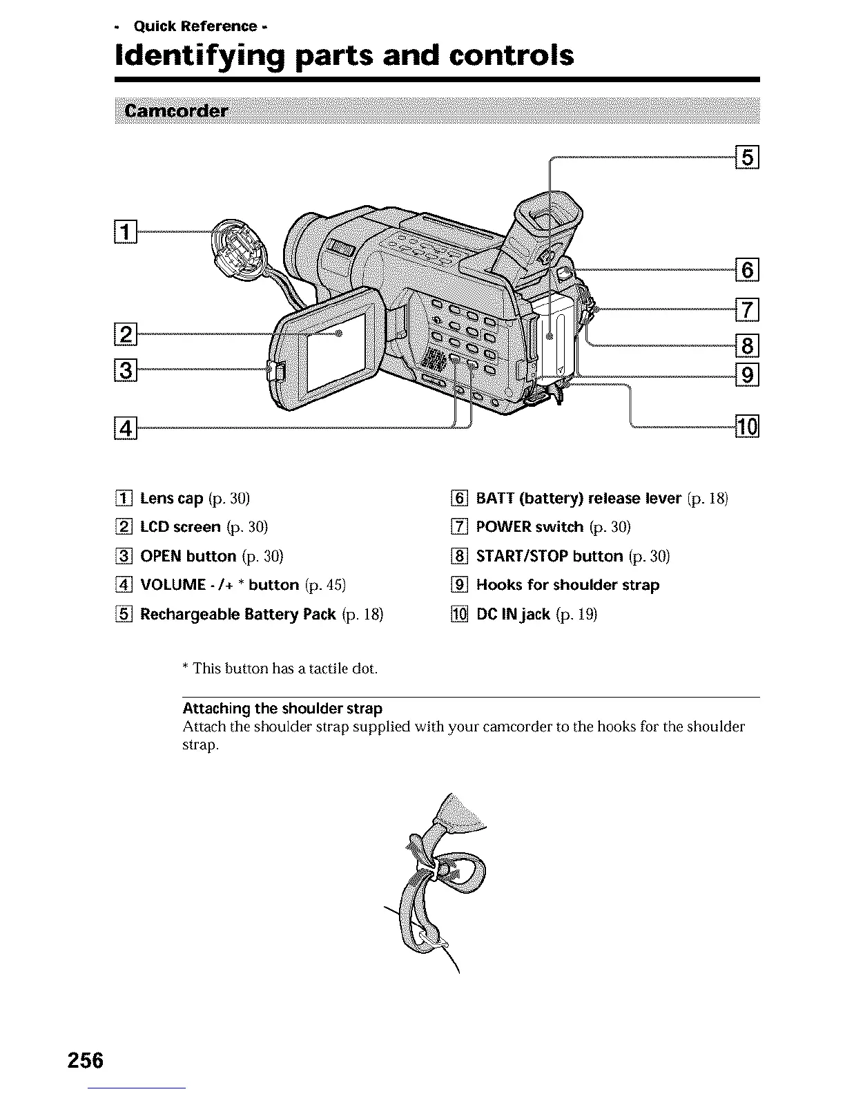 Attach the shoulder strap supplied with your camcorder to the books for the shoulder