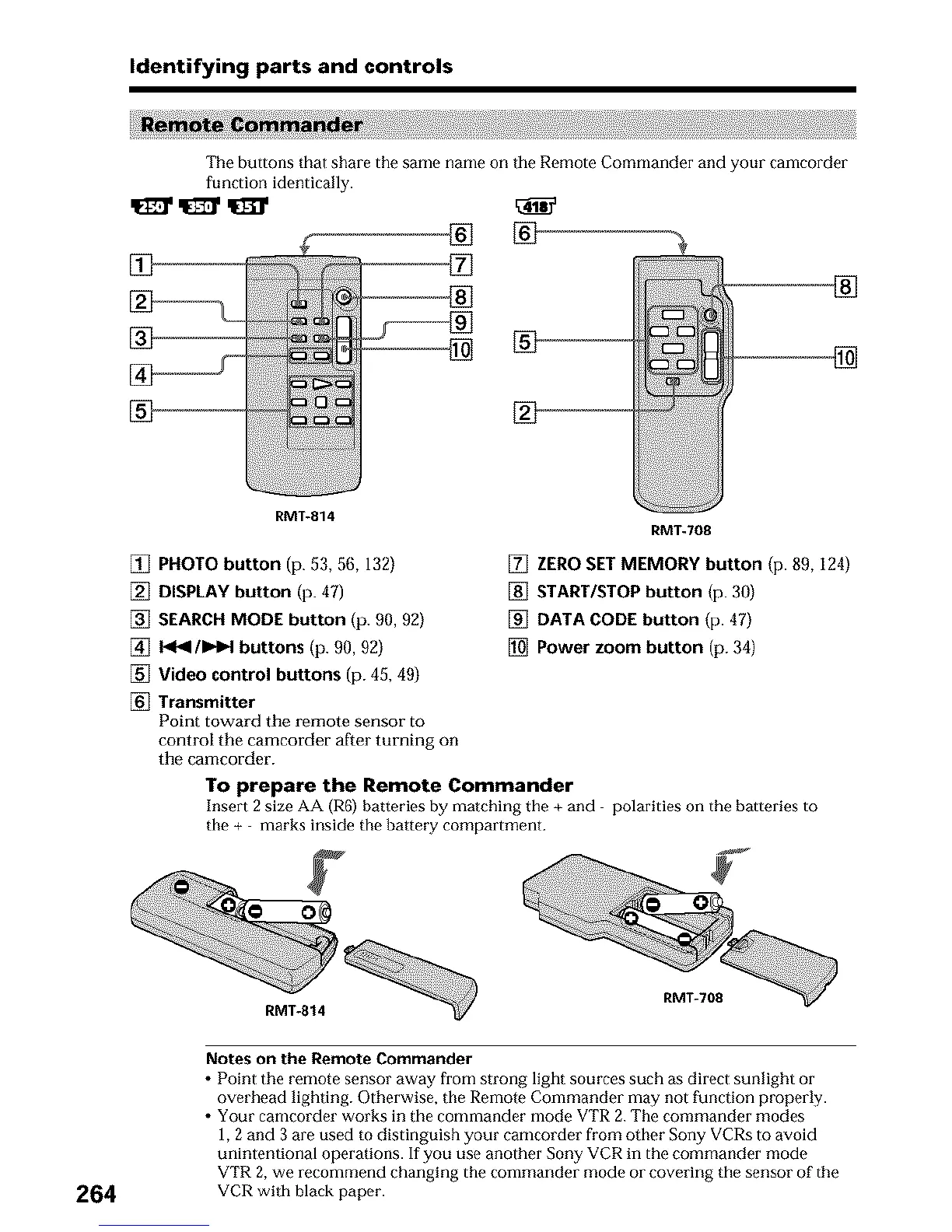 unintentional operations. If you use another Sony VCR in the commander mode