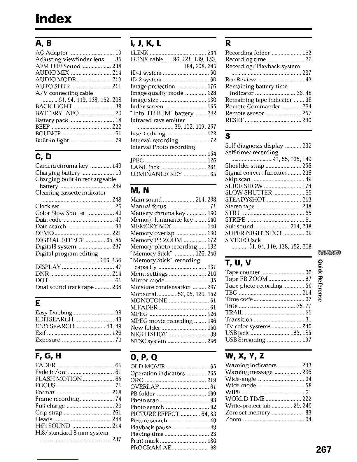 STEADYSHOT ....................... 213