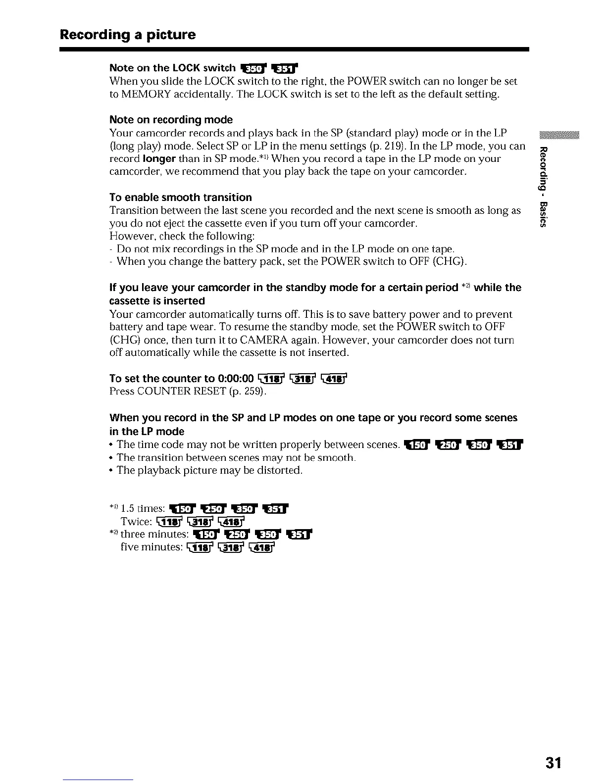 {long play) mode. Select SP or LP in the menu settings (p. 219). In the LP mode, you can