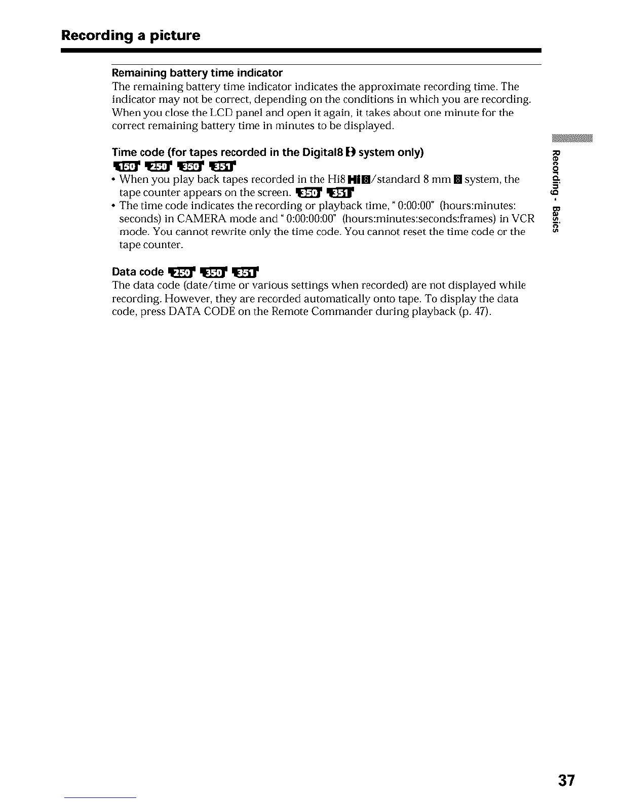 code, press DATA CODE on the Romote Commander during playback (p. 47).
