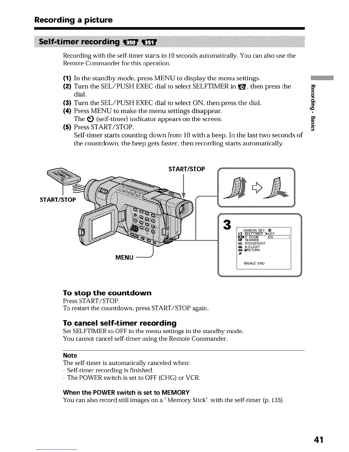 You can also record still images on a ¢Memory Stick" with the self-timer (p. 135).