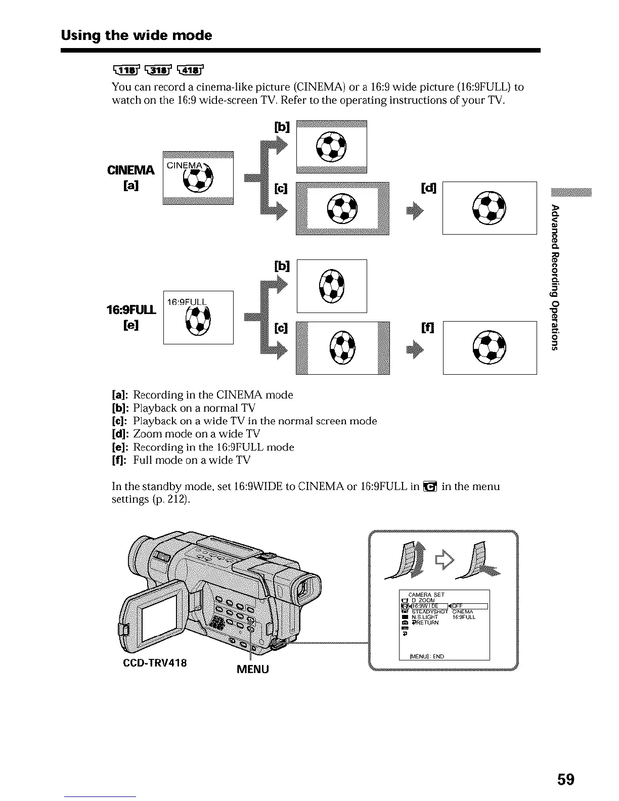 watch on the 16:9 wide-screen TV. Refer to the operating instructions of your TV.