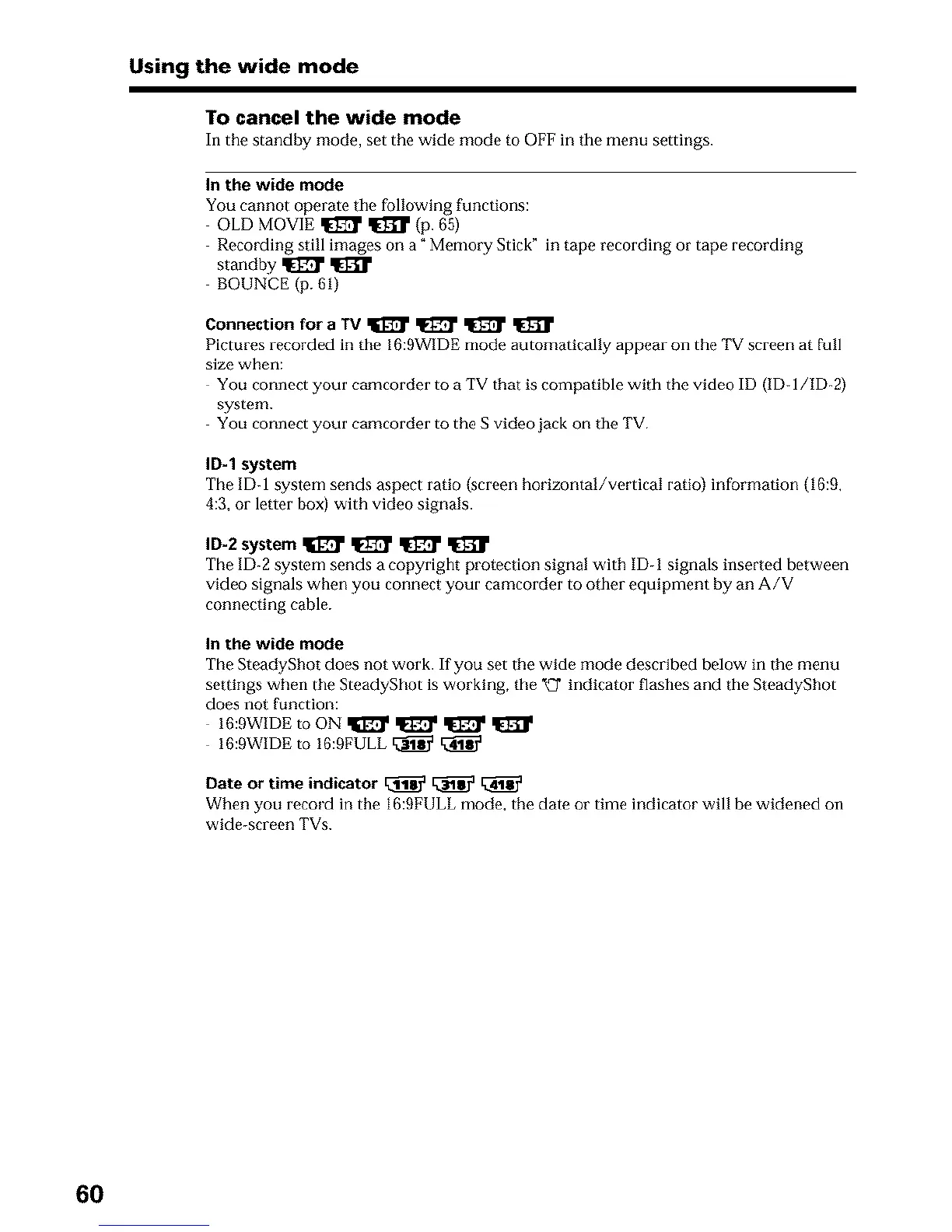 The SteadyShot does not work. If you set the wide mode described below in the menu