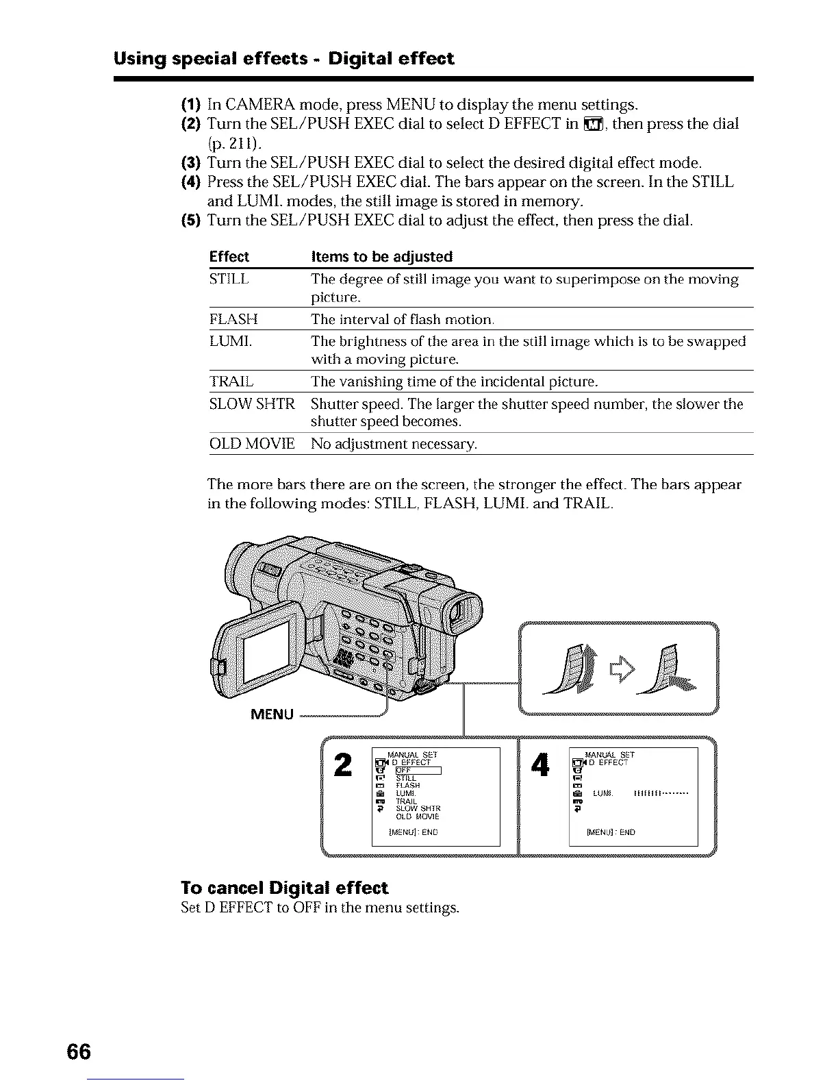 (3) Turn the SEL/PUSH EXEC dial to select the desired digital effect mode.