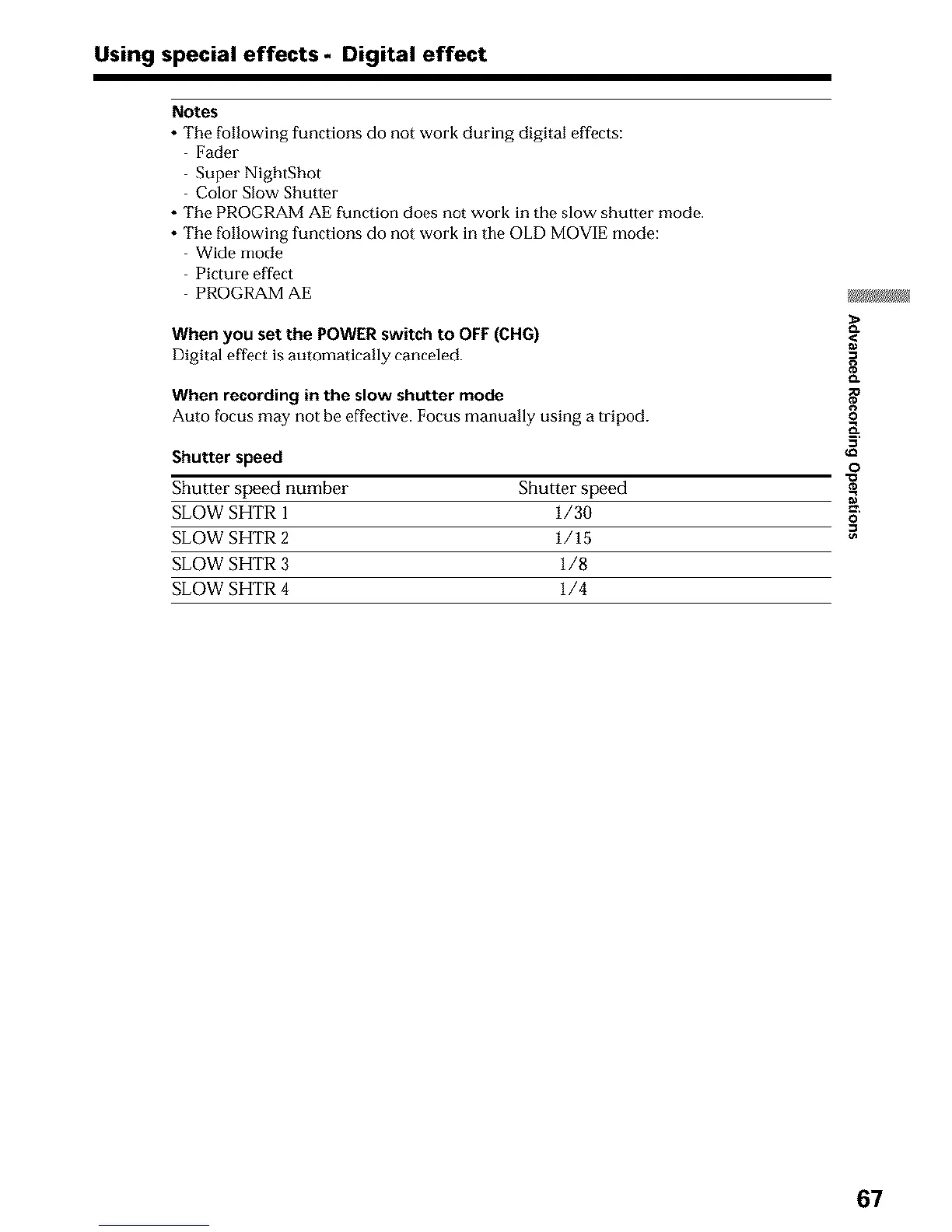 • The PROGRAM AE function does not work in the slow shutter mode.