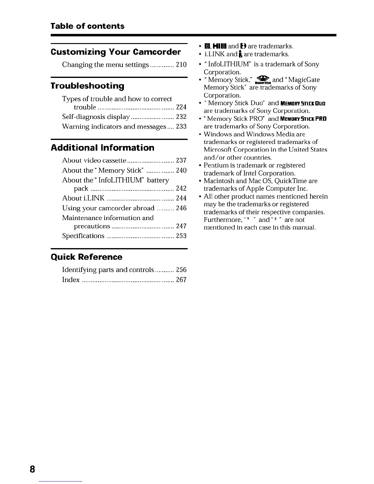 About the" Memory Stick" ................ 240