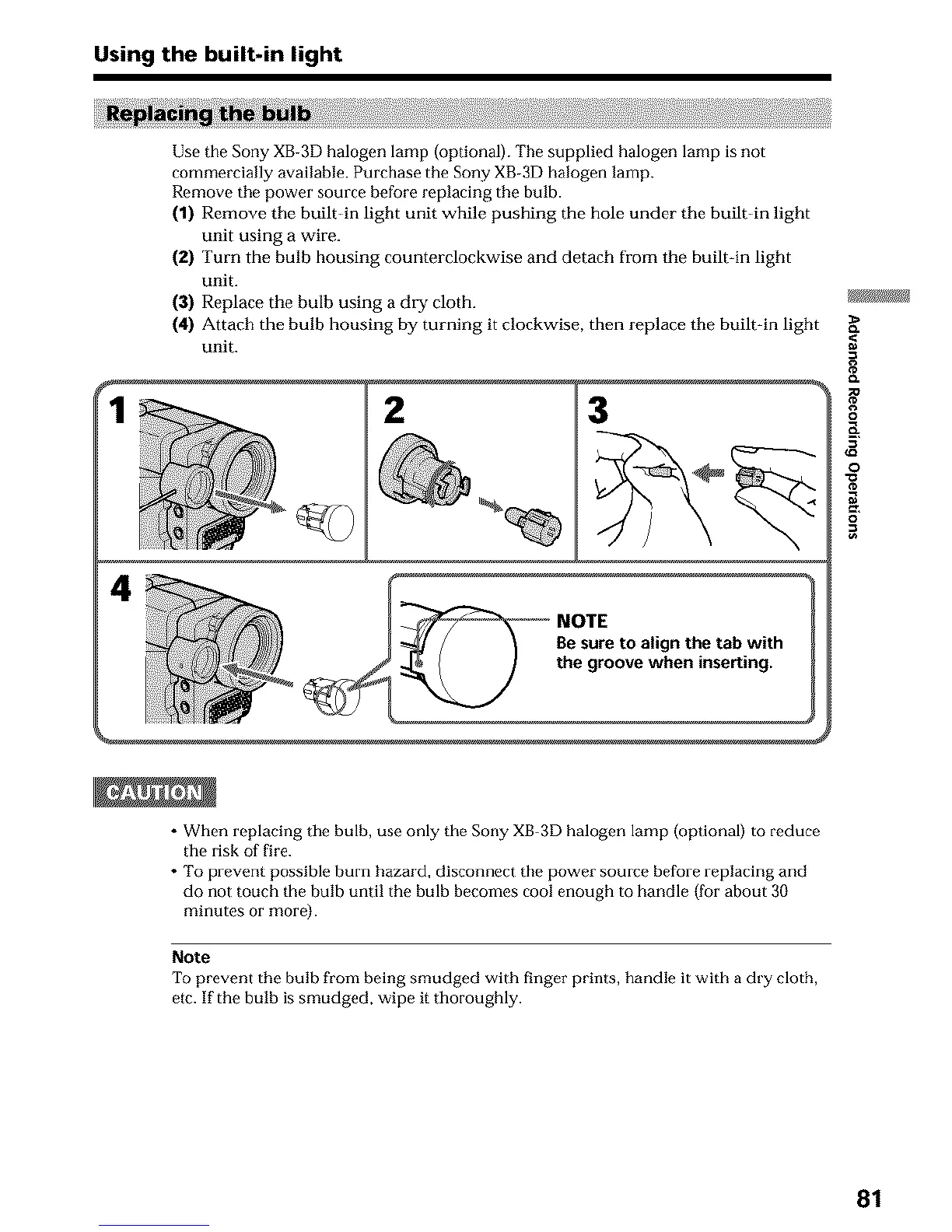 • When replacing the bulb, use only the Sony XB-3D halogen lamp (optional) to reduce