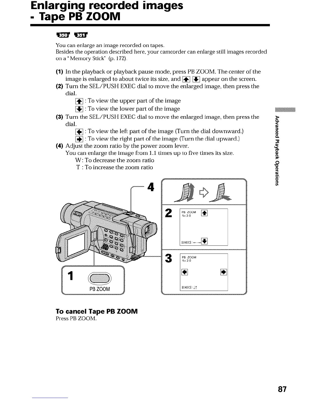 (1) In the playback or playback pause mode, press PB ZOOM. The center of the