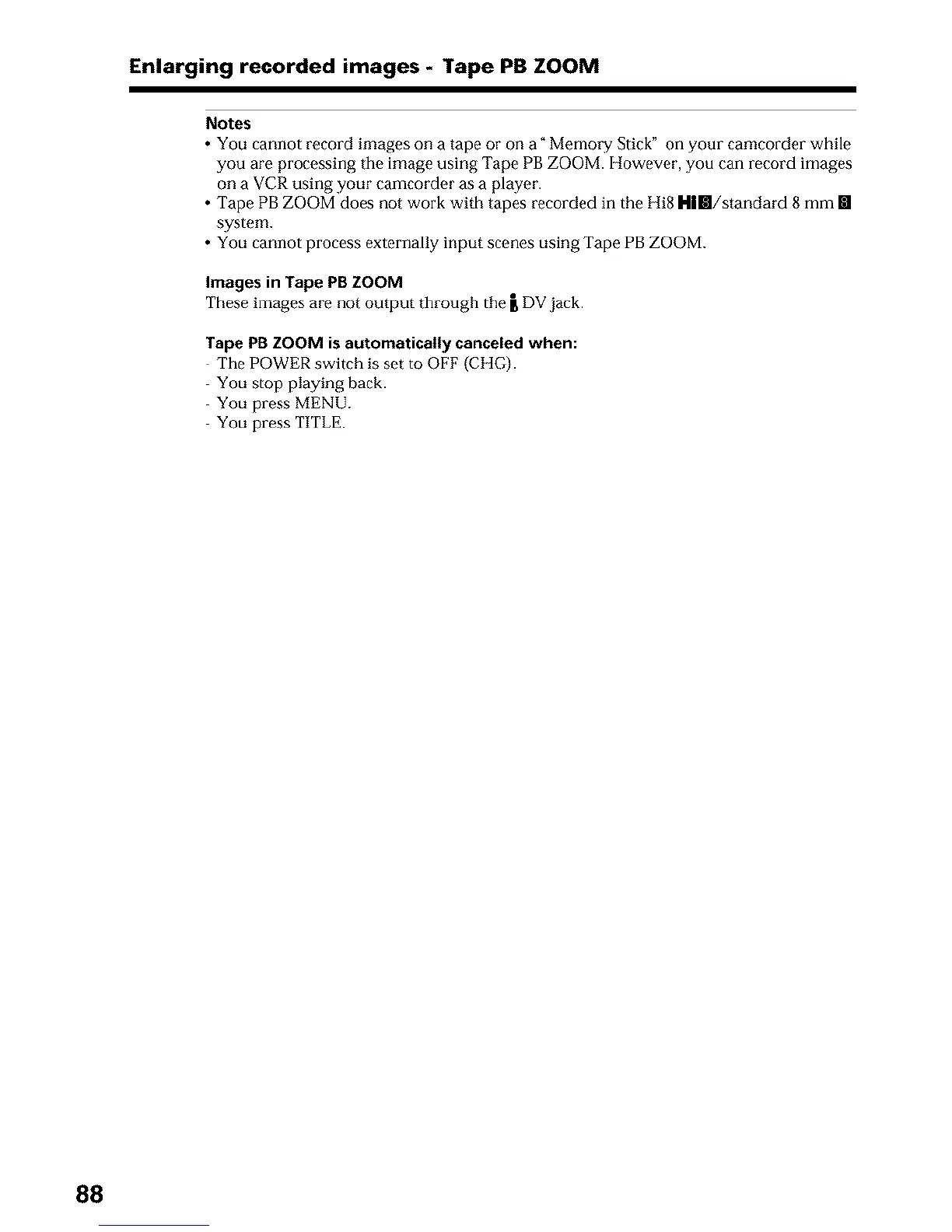 • Tape PB ZOOM does not work with tapes recorded in the Hi8 Him/standard 8 mm []