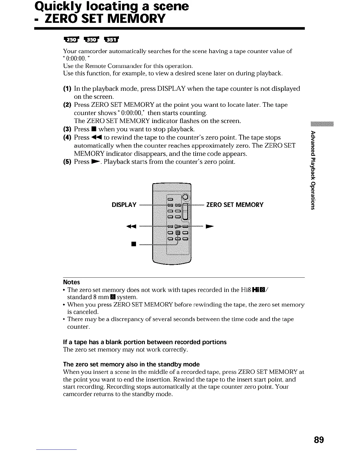 • The zero set memory does not work with tapes recorded in the Hi8 H|m/