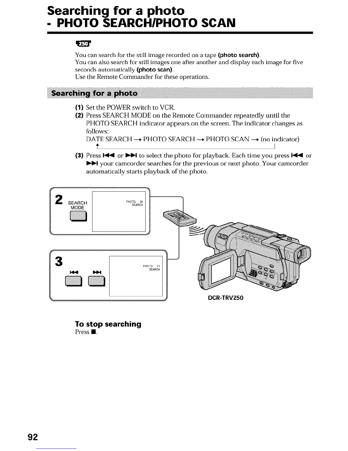 PHOTO SEARCH indicator appears on the screen. The indicator changes as
