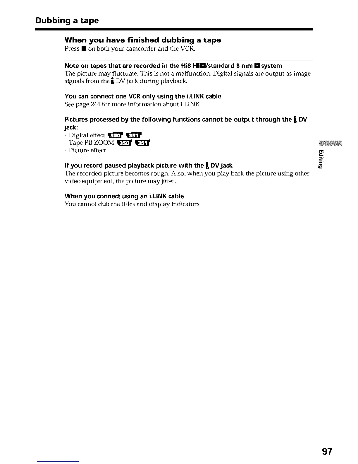 signals from the _, DV jack during playback.