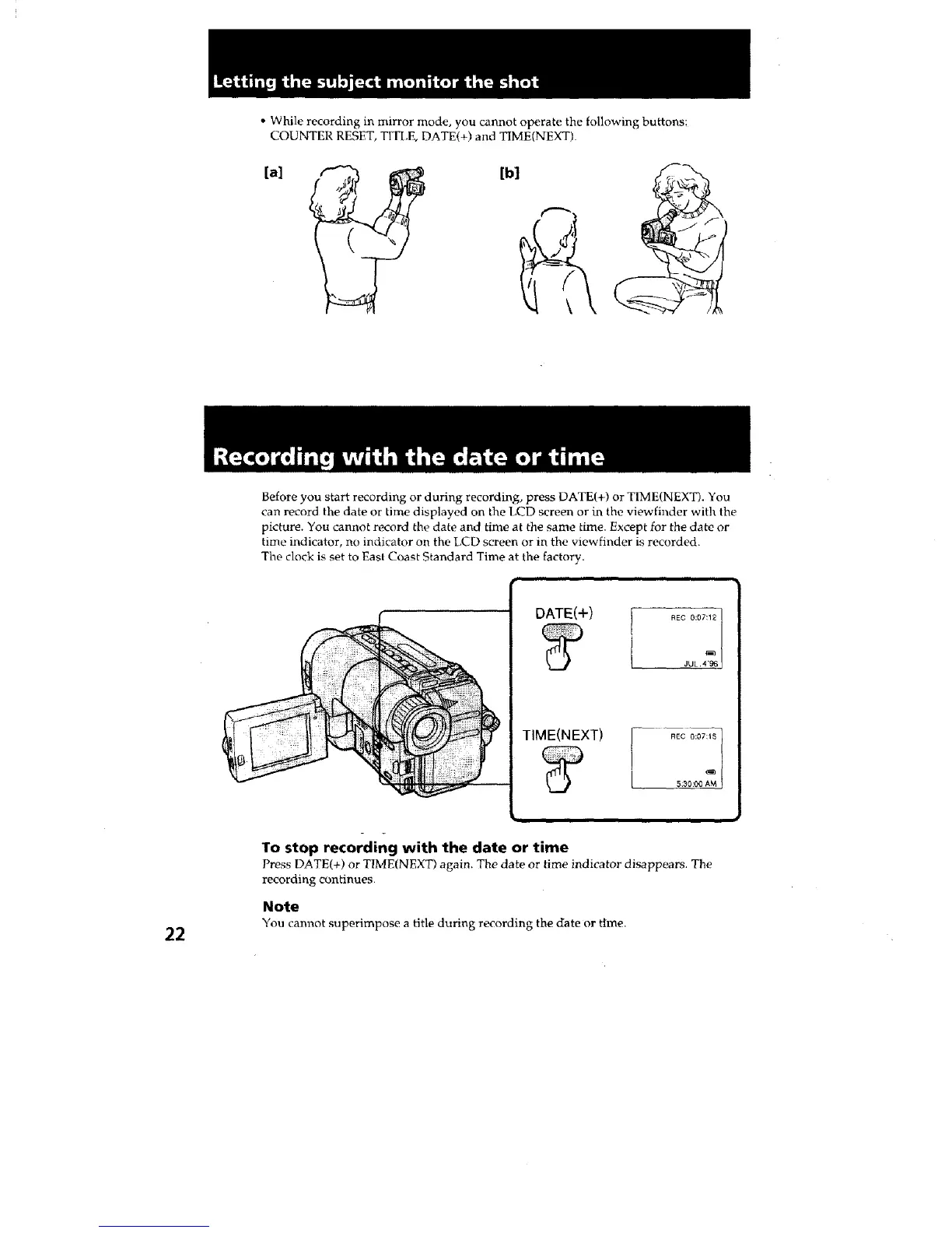 can record the date or time displayed on the LCD screen or in the viewfinder with the