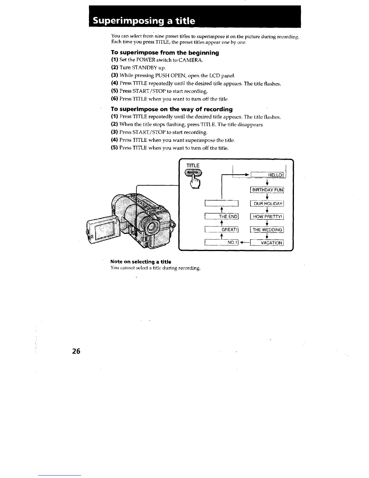 You can select from nine preset titles to superimpose it on the picture during recording.