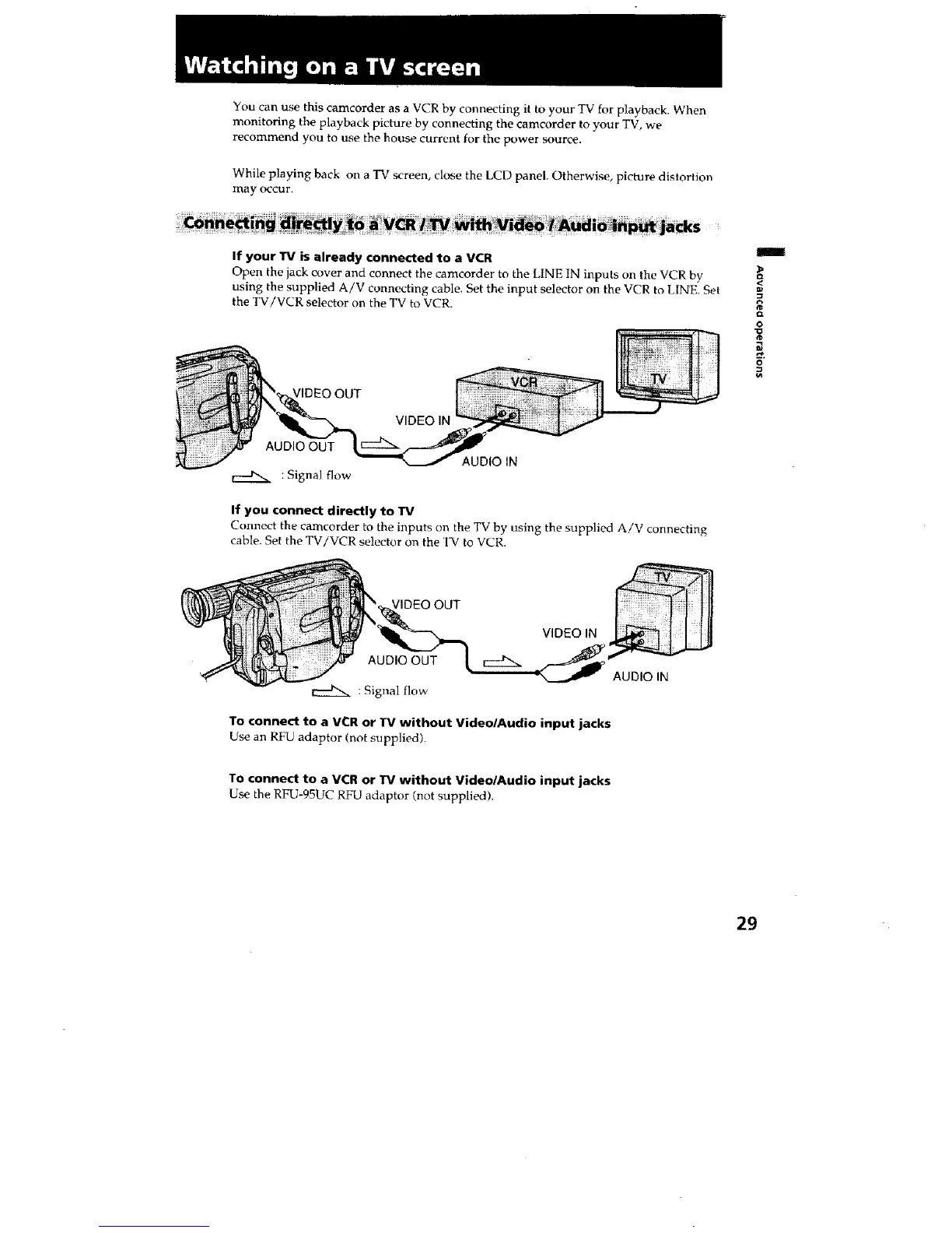 TO connect to a VCR or TV without Video/Audio input jacks