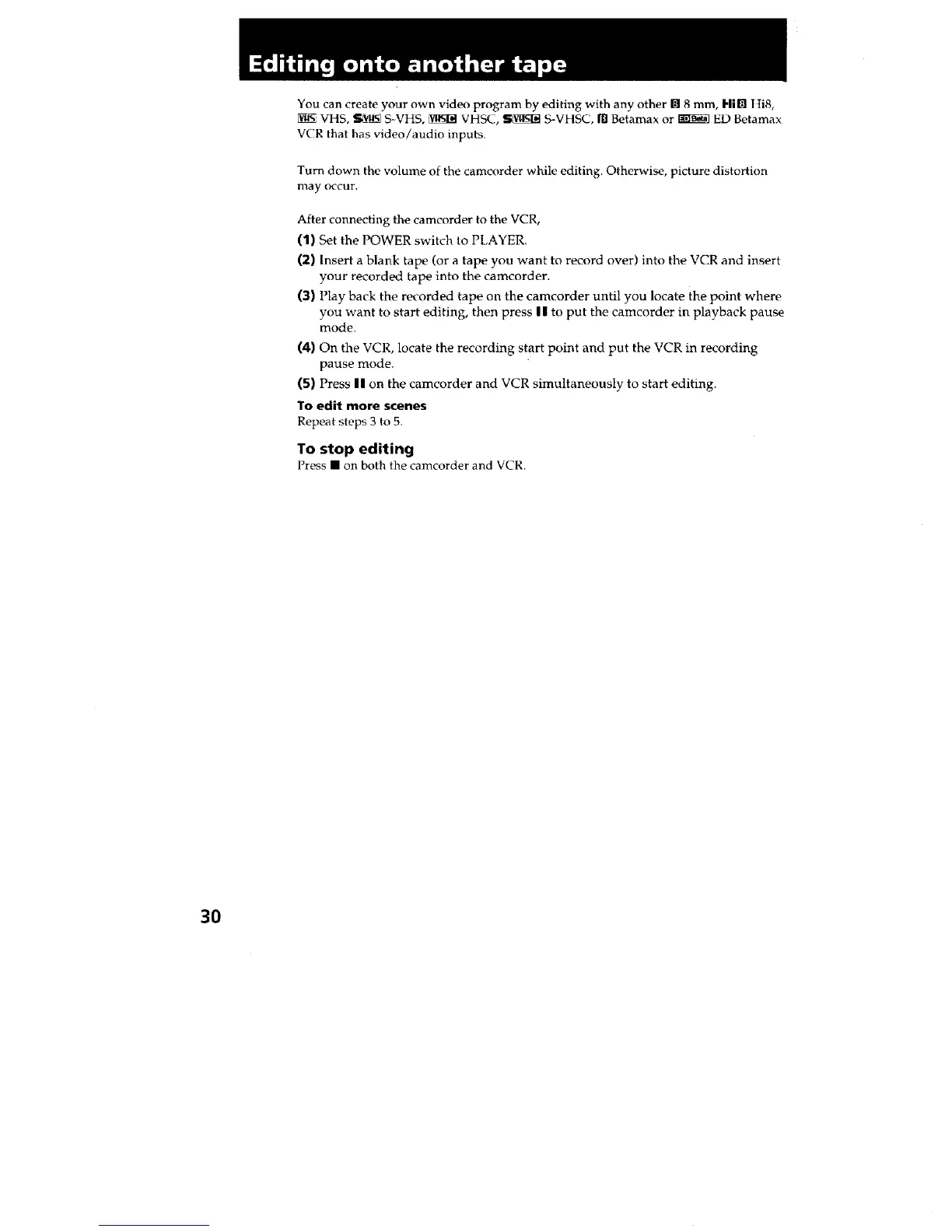 You can create your own video program by editing with any other • 8 mm, Hi• t ti8,