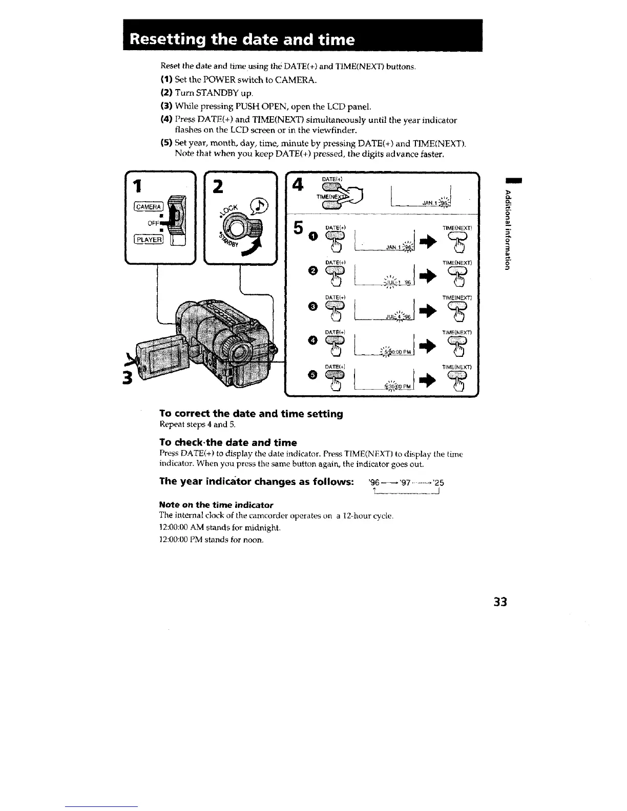 The internal clock of the camcorder operates on a 12-hour cycle.