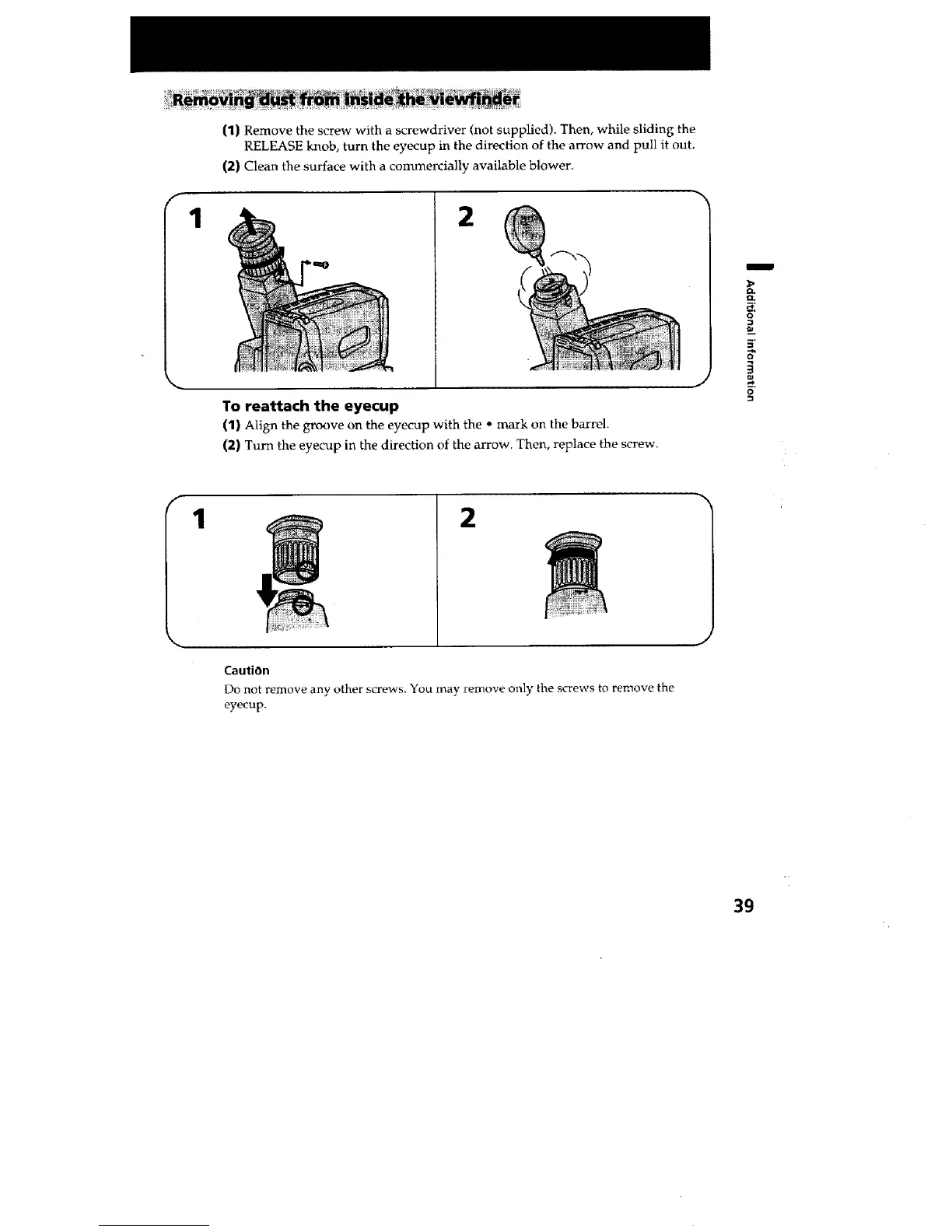 RELEASE knob, turn the eyecup in the direction of the arrow and pull it out.