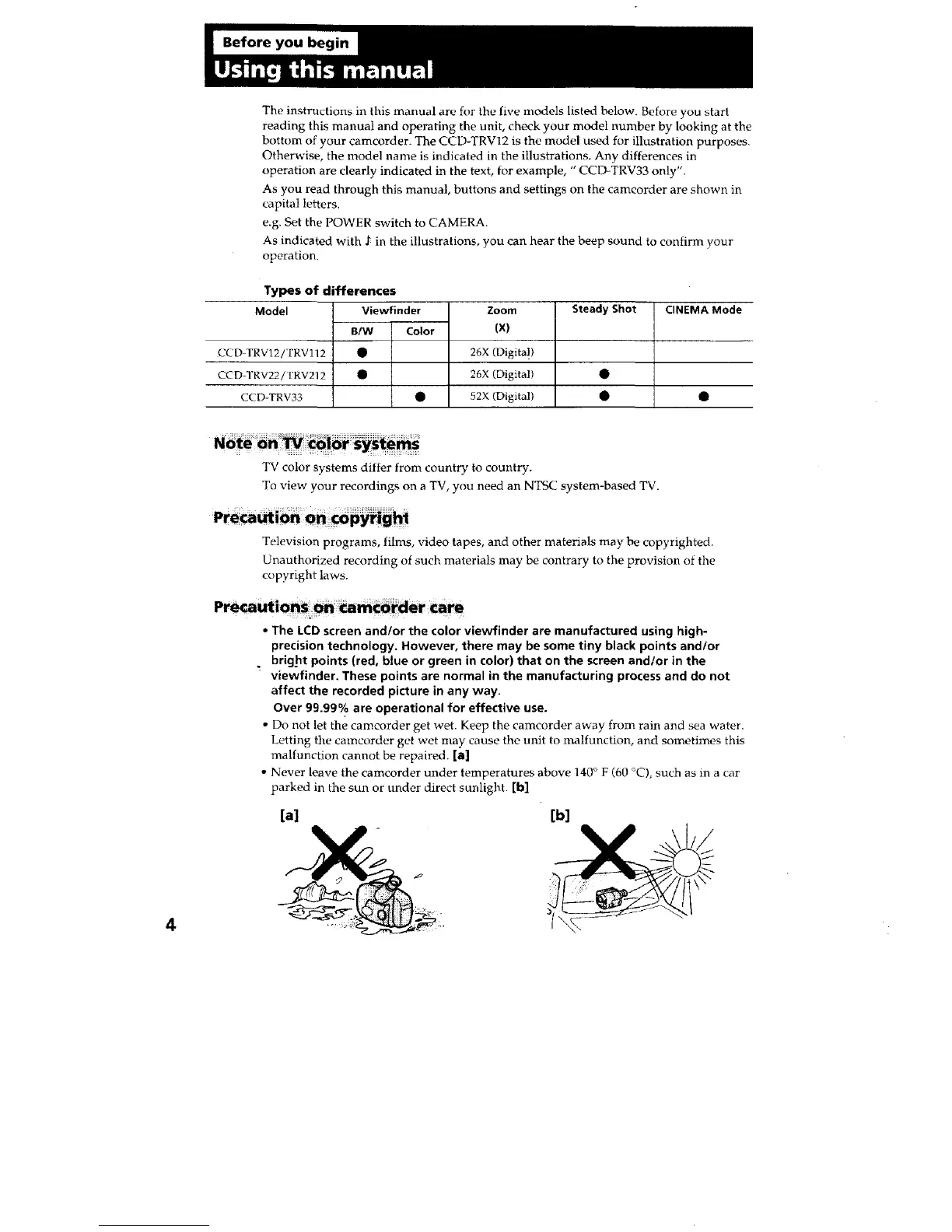 operation are clearly indicated in the text, forexample, "CCD-TRV33 only".
