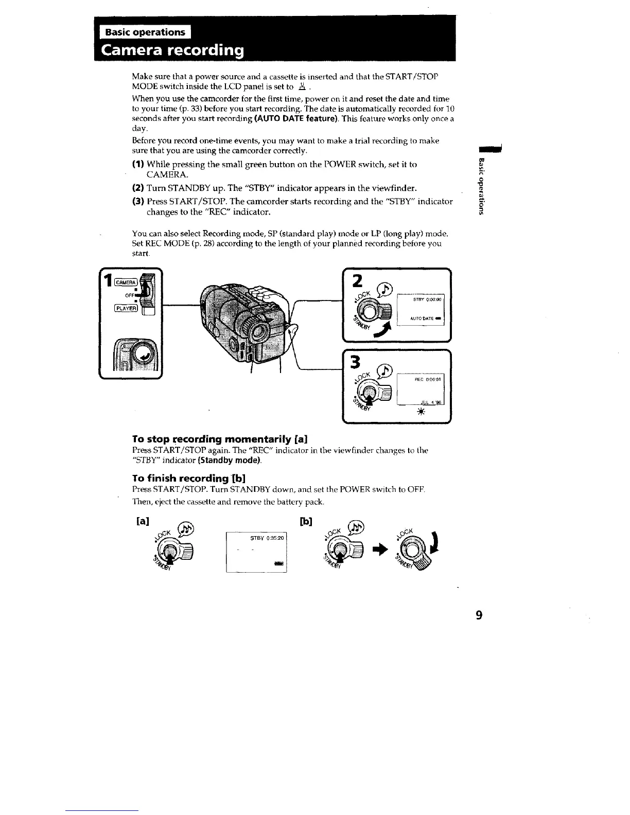(3) Press START/STOP. The camcorder starts recording and the "STBY" indicator
