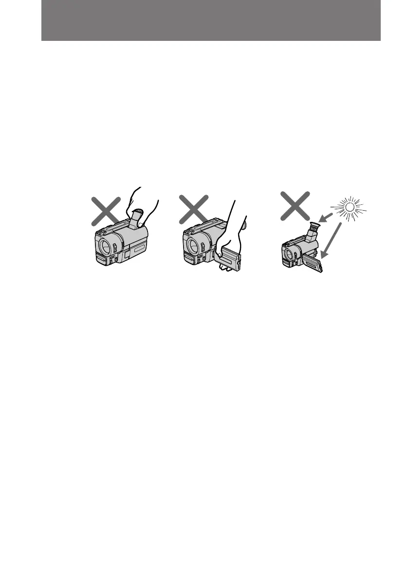 •Do not place the camcorder so as to point the viewfinder or the LCD screen toward